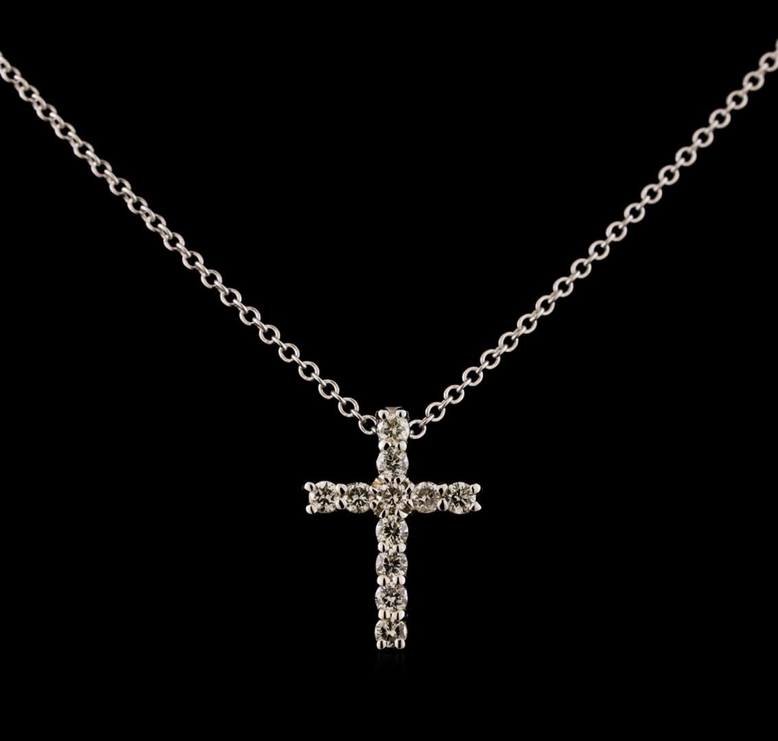 One cross pendant with chain featuring: 14KT white gold weighing 2.78 grams containing diamonds weighing 0.35ctw.