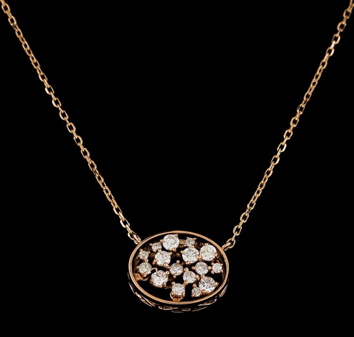 One Diamond Necklace featuring: 14KT Rose Gold with a total weight of 2.72 grams and 16 Diamonds with a total weight of 0.35ctw.
