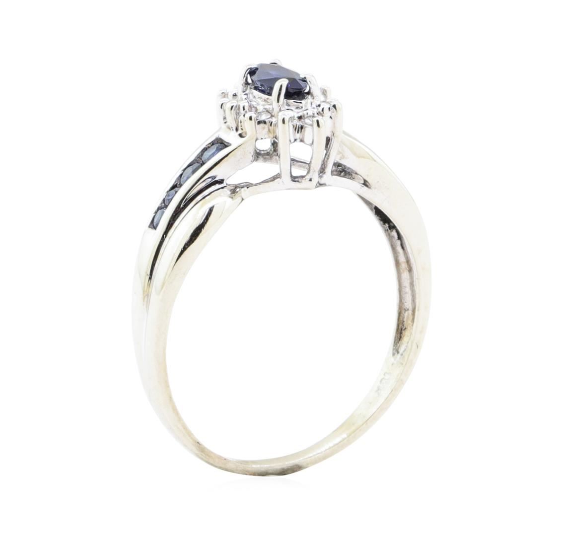 One designer bypass ring with a halo featuring: 10KT white gold weighing 2.7 grams containing sapphires weighing 0.30 ctw and diamonds weighing 0.05ctw.