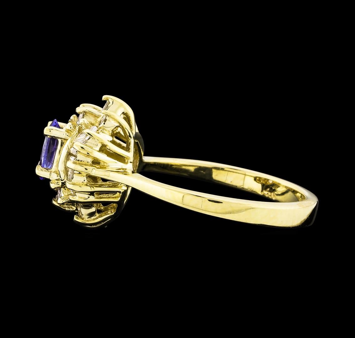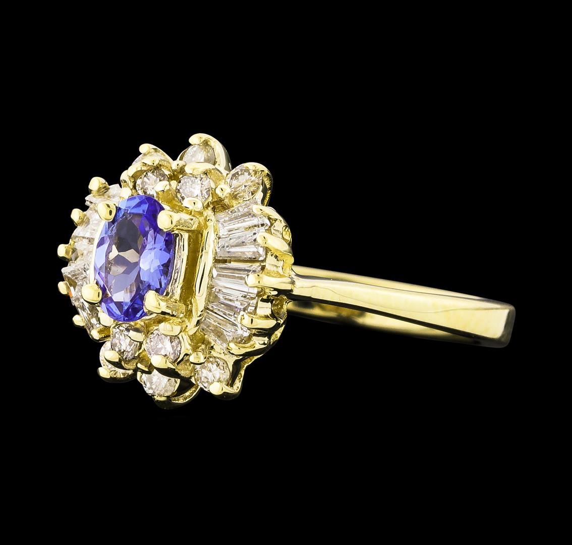 One ring: 14KT yellow gold weighing 4.00 grams containing on center tanzanite weighing 0.35ct and diamonds weighing 0.75ctw.