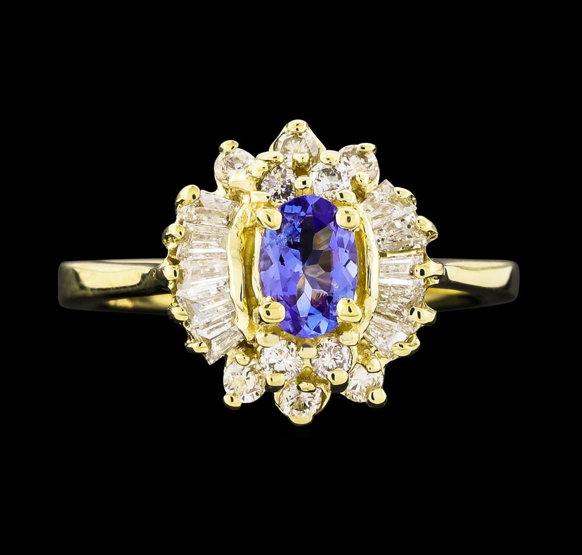 One ring: 14KT yellow gold weighing 4.00 grams containing on center tanzanite weighing 0.35ct and diamonds weighing 0.75ctw.