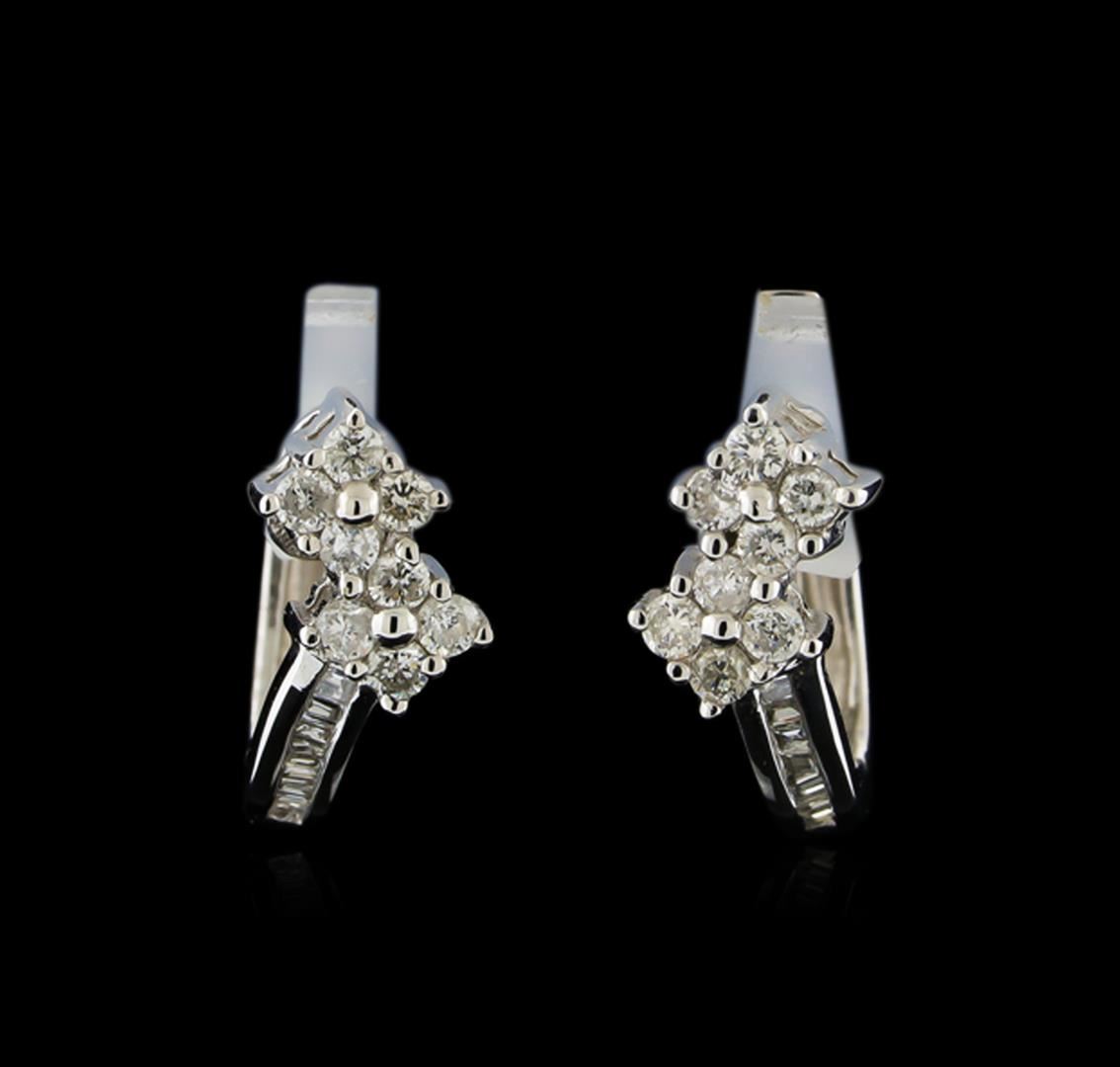One pair of earrings featuring: 18KT white gold weighing approximately 2.6 grams containing diamonds with a total weight of 0.36ct.