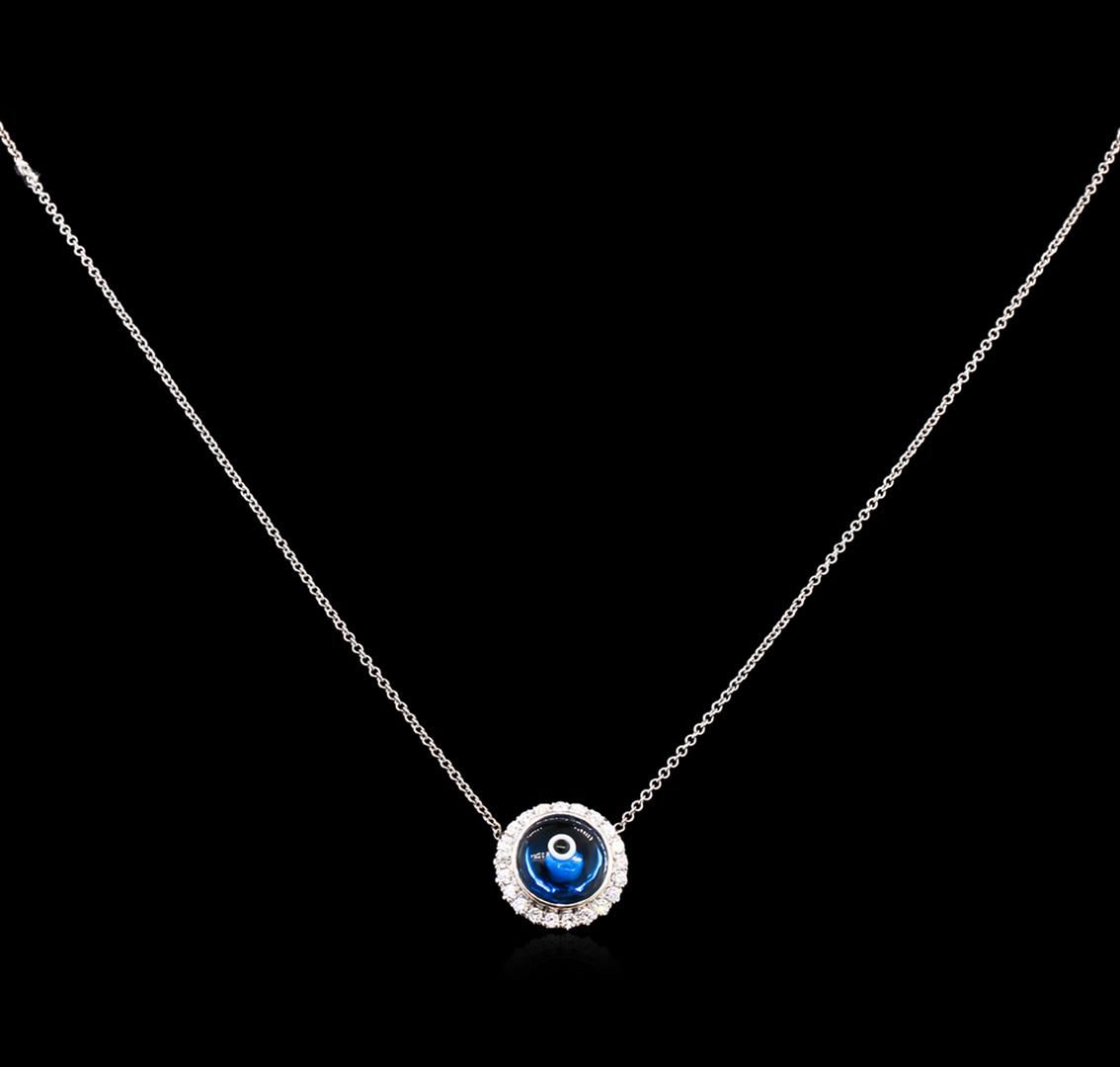 One evil eye pendant with chain featuring: 14KT white gold weighing 4.82 grams containing diamonds with a total weight of 0.37ct.