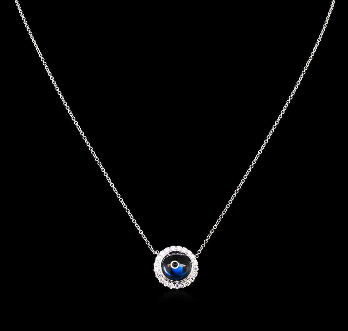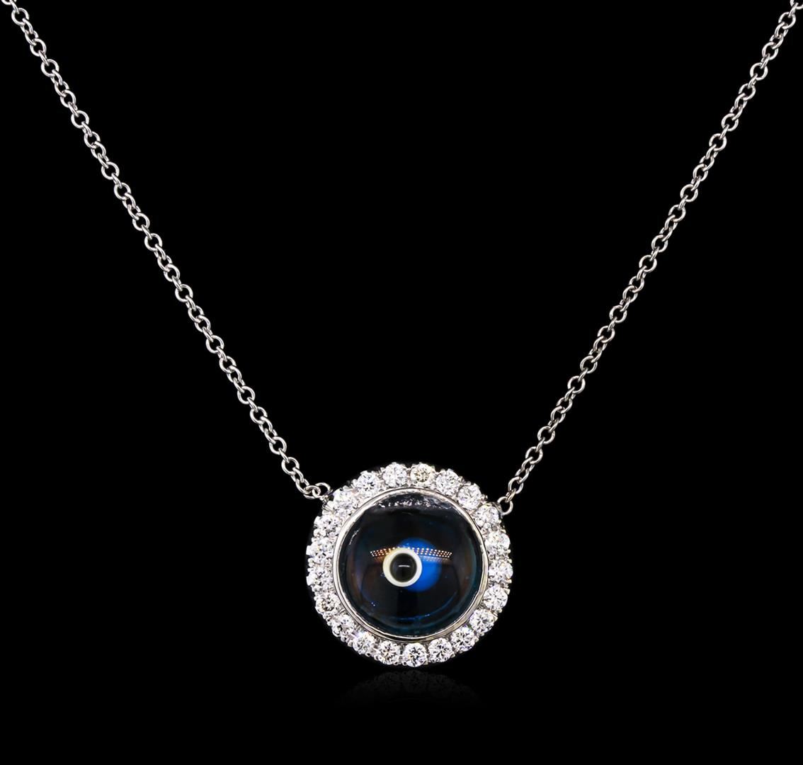 One evil eye pendant with chain featuring: 14KT white gold weighing 4.84 grams containing diamonds with a total weight of 0.37ct.