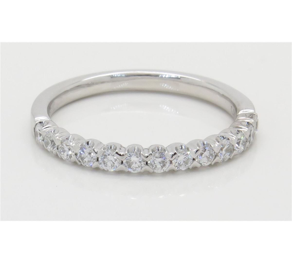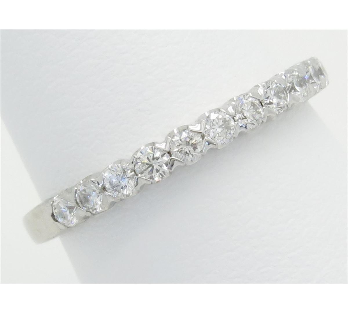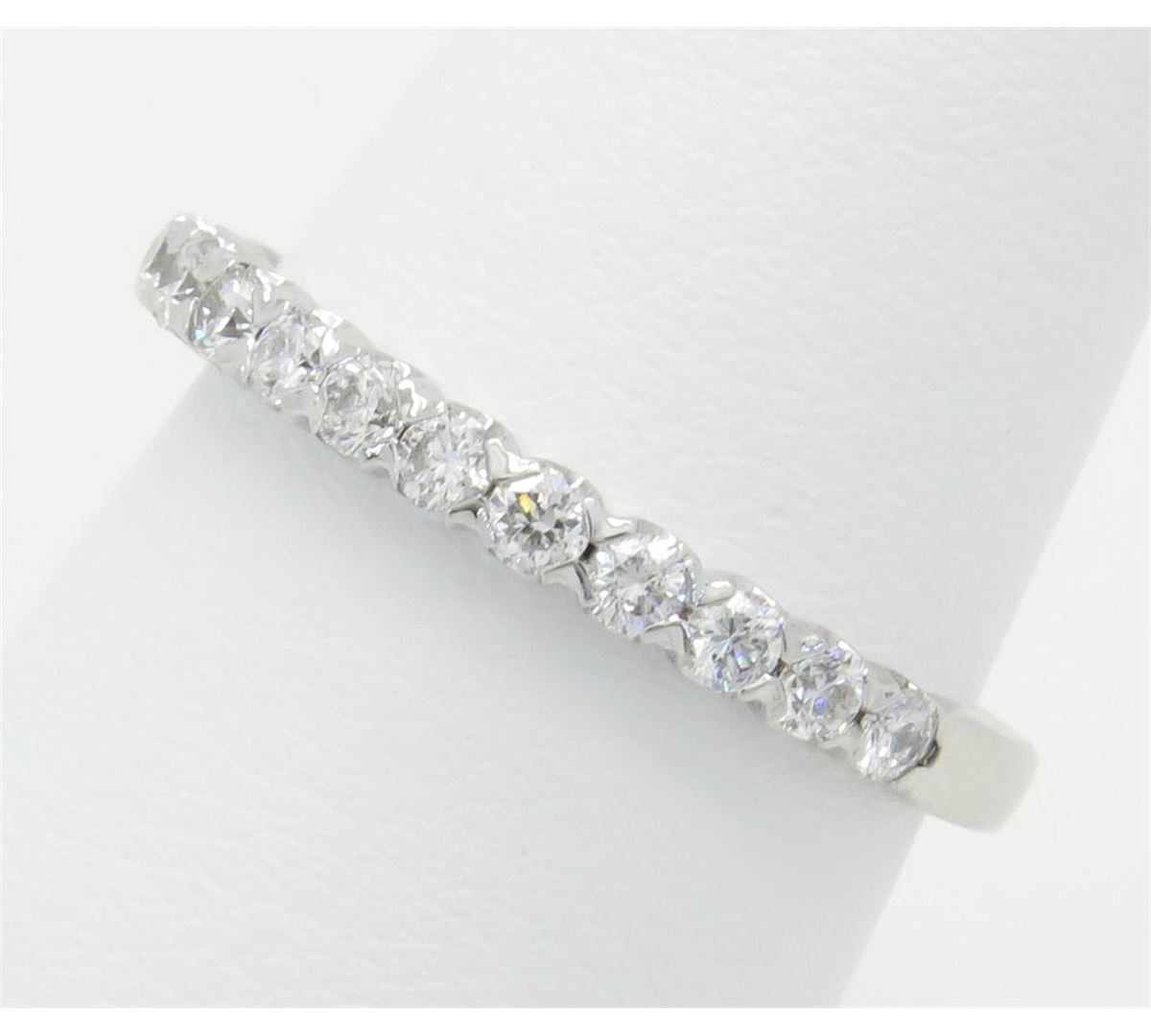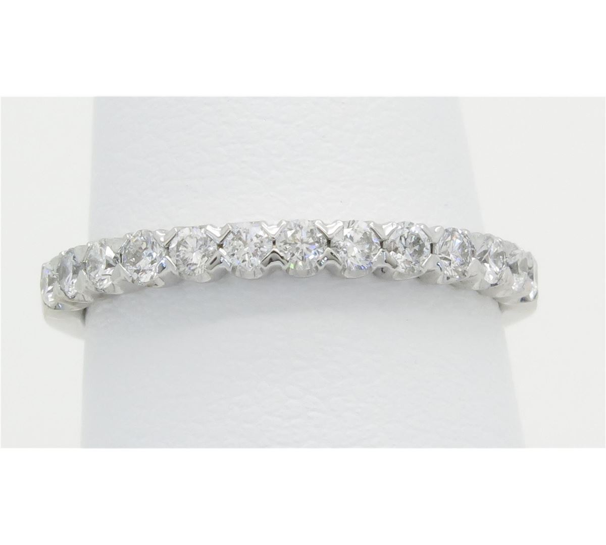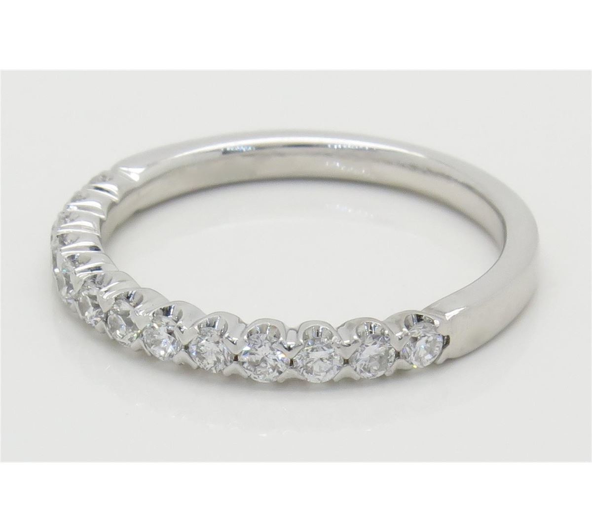 One tested 14K white gold diamond ring. Containing: 13 Round Brilliant Cut Diamonds. Clarity: SI, Color: E-F. Approximate total diamond weight: .37CTW. Diamonds are graded in the mounting, unless otherwise stated. Weight: 2.2 grams. Size: 5.5