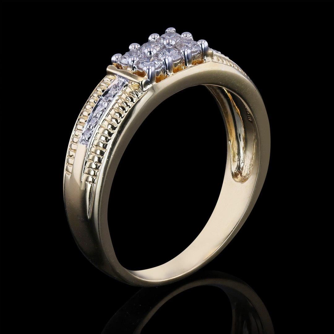 DESCRIPTION : One Yellow Gold Ring, Partly Rhodium Plated, weighing in total 6.57 g., containing Sixteen Natural Diamonds SHAPE/CUT : Round Brilliant TOTAL EST. WT. : 0.38 Carat COLOR : H â€" I CLARITY SI COMMENTS : Grading & Identification of origin as mounting permits. Summary number engraved. Style # 103595R-31 Size: 10