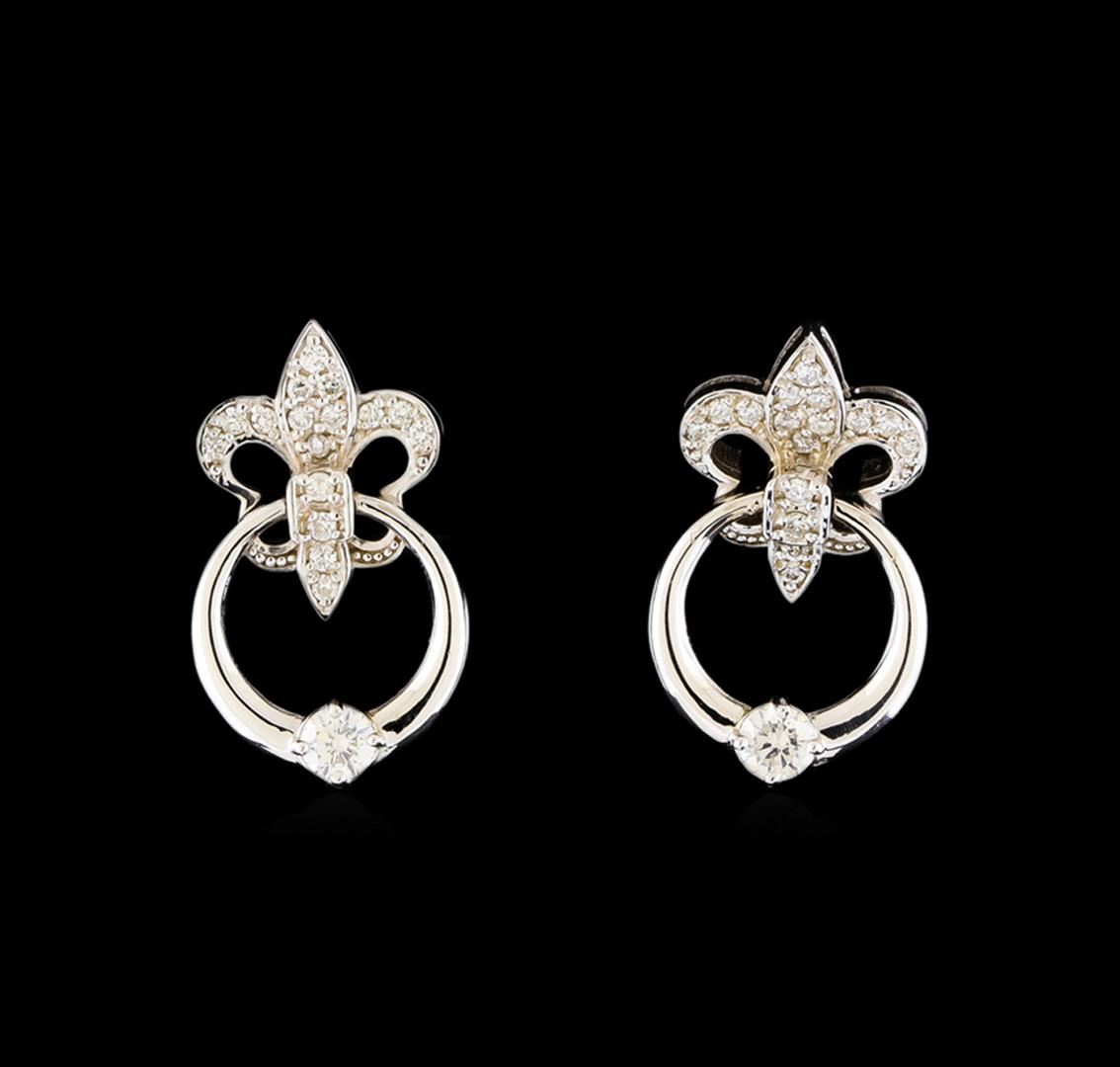 One pair of earrings featuring: 14KT white gold weighing 4.54 grams containing two diamonds weighing 0.20ctw and side diamonds weighing 0.18ctw.