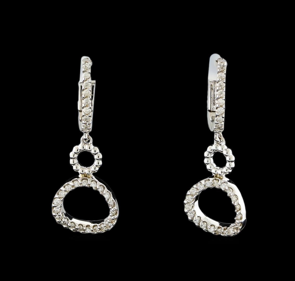 One pair of Earrings featuring: 14KT White Gold weighing 3.97 grams containing Diamonds with a total weight of 0.38ct.