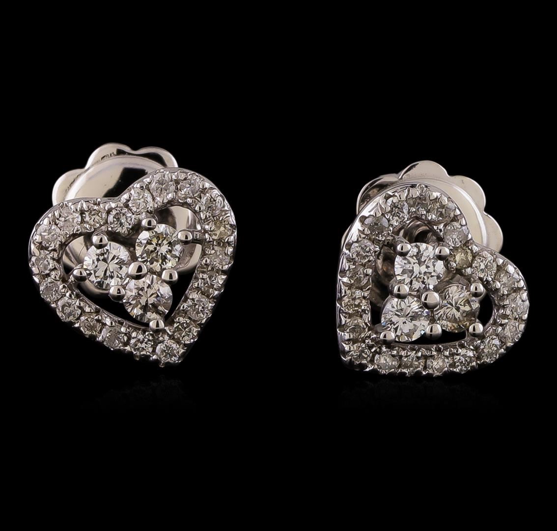 One pair of earrings featuring: 14KT white gold weighing 2.54 grams containing diamonds with a total weight of 0.40ctw.