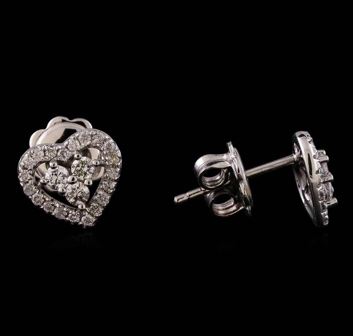 One pair of earrings featuring: 14KT white gold weighing 2.54 grams containing diamonds with a total weight of 0.40ctw.