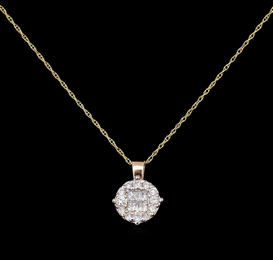 One Pendant with chain: 14KT rose gold containing diamonds with a total weight of 0.40ctw.