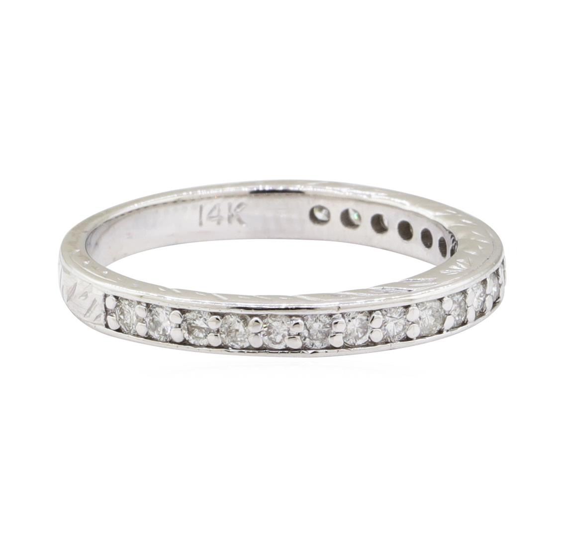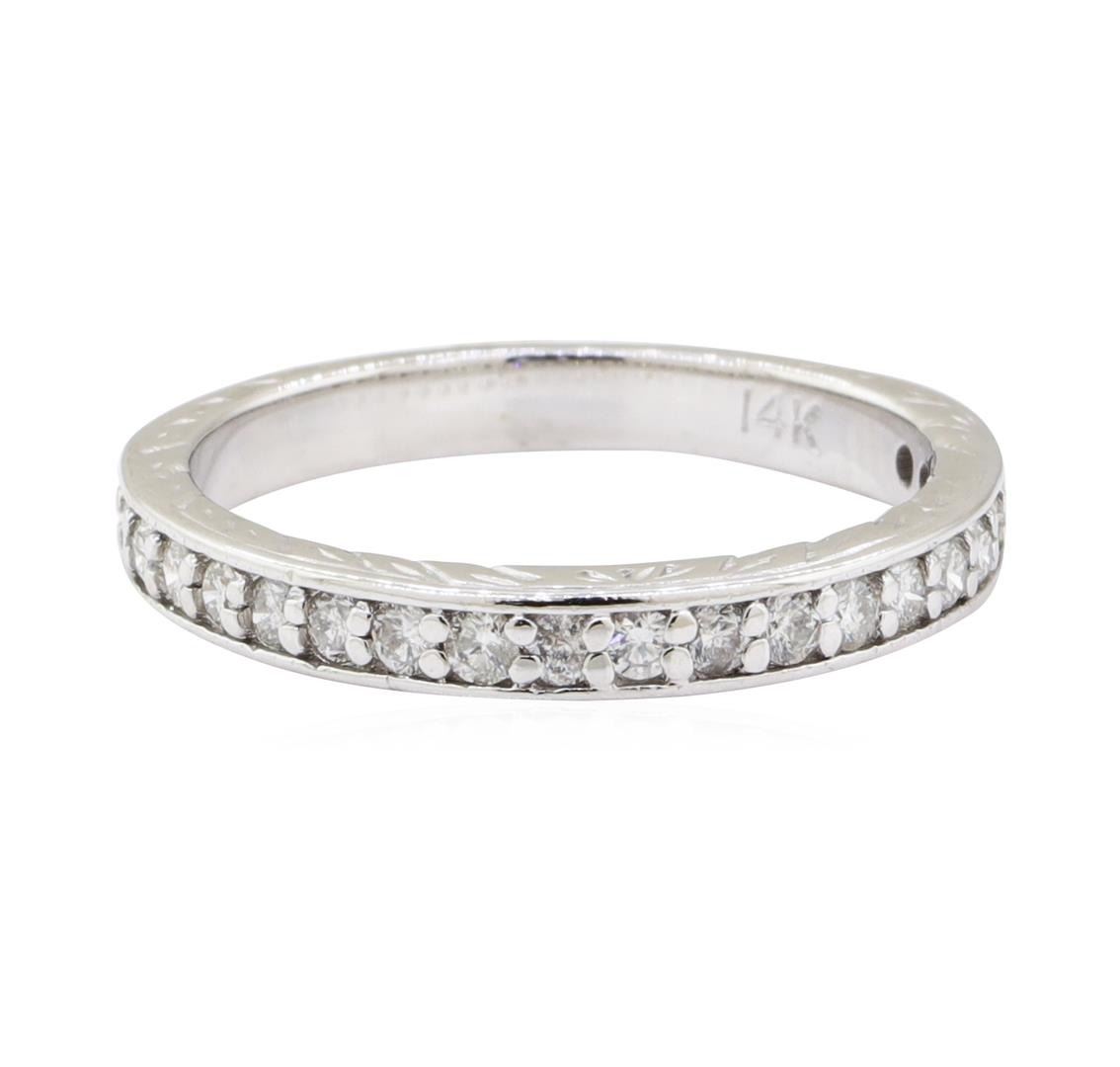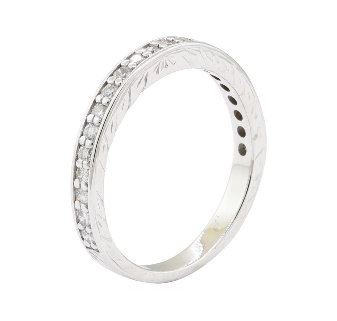 One ring with hand engraved detailing featuring: 14KT white gold weighing 2.8 grams containing diamonds weighing 0.40 ctw.