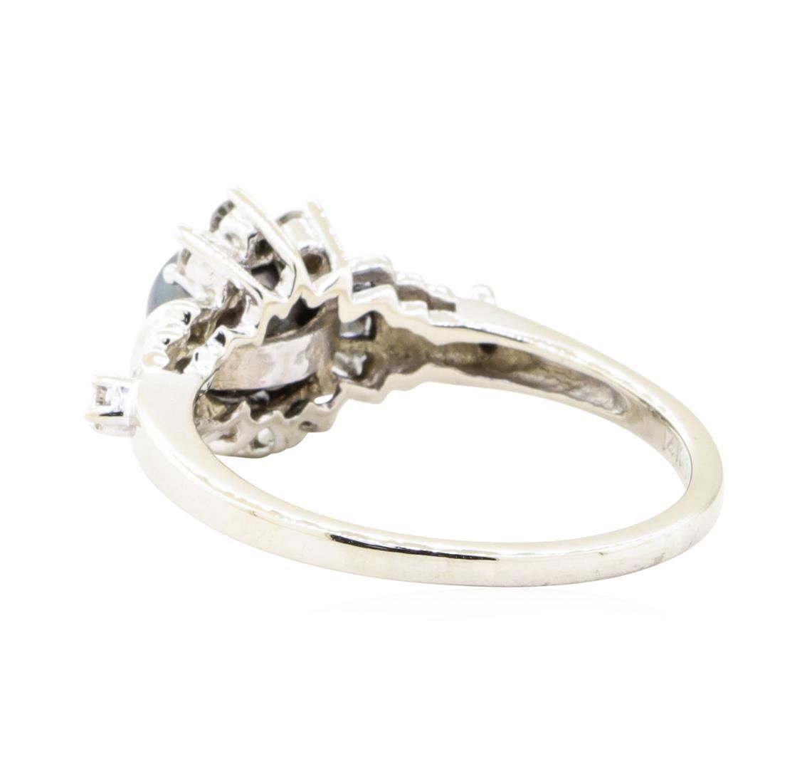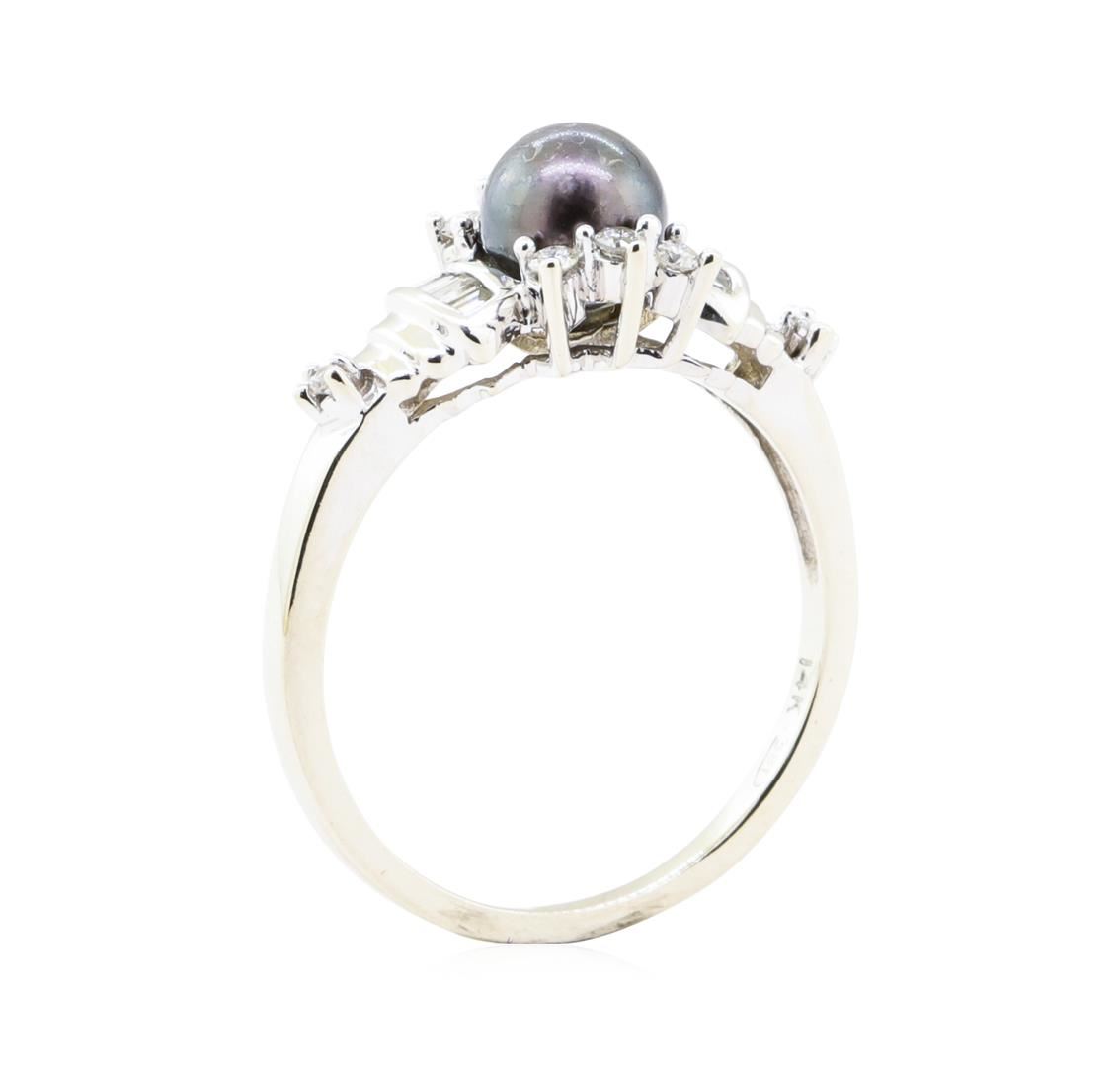 One ring featuring: 14KT white gold weighing 4.5 grams containing diamonds weighing 0.40 ctw and one cultured dyed black pearl measuring 7mm.