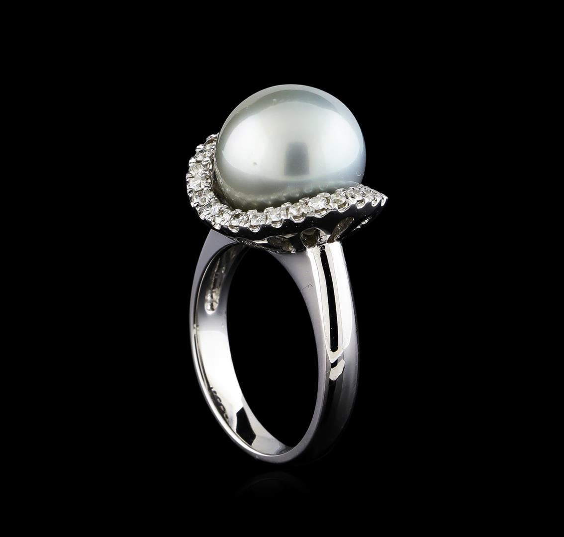 One ring featuring: 14KT white gold weighing 6.95 grams containing one pearl and side diamonds with a total weight of 0.40ct.