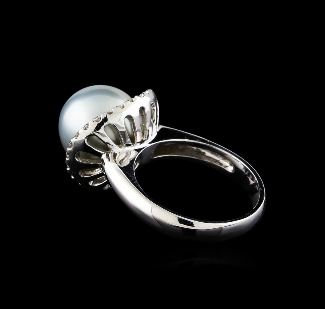 One ring featuring: 14KT white gold weighing 6.95 grams containing one pearl and side diamonds with a total weight of 0.40ct.