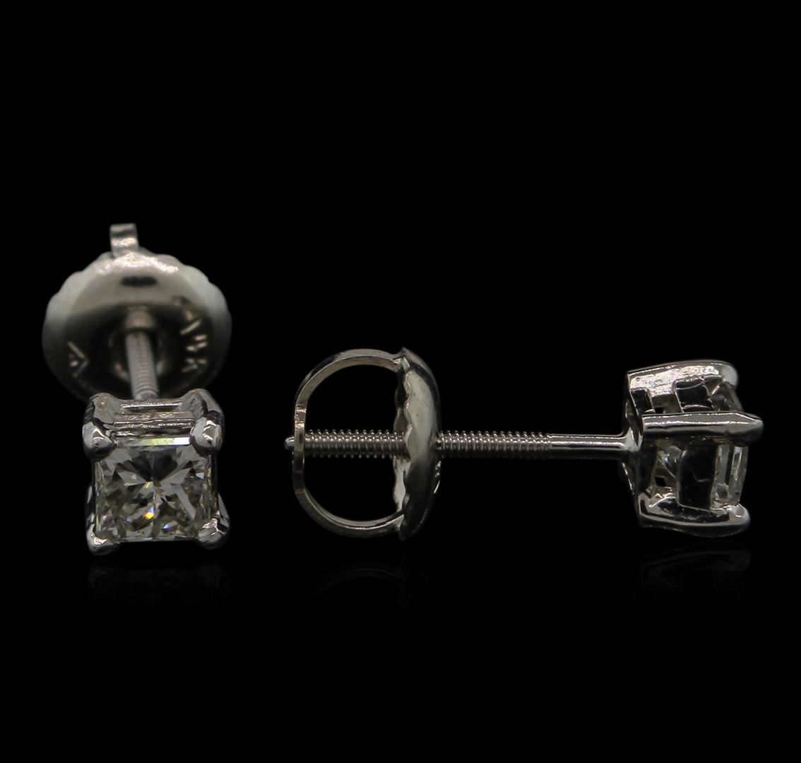 One pair of stud earrings featuring: 14KT white gold weighing 0.51 grams containing prong set princess cut diamonds with a total weight of 0.40ct.