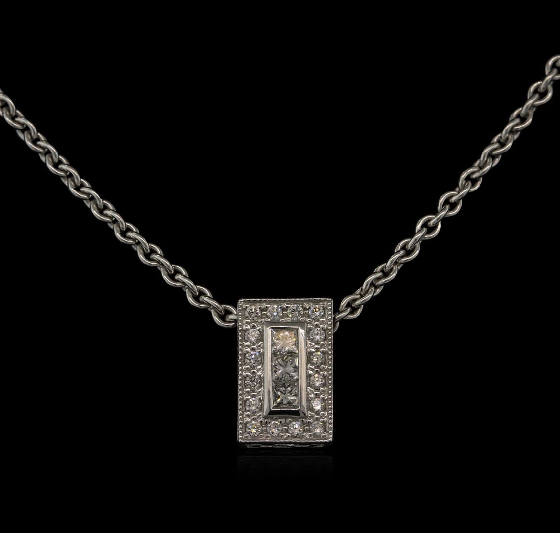One pendant with chain featuring: 18KT white gold weighing 11.80 grams containing pave set round and channel set princess cut diamonds with a total weight of 0.41ct.