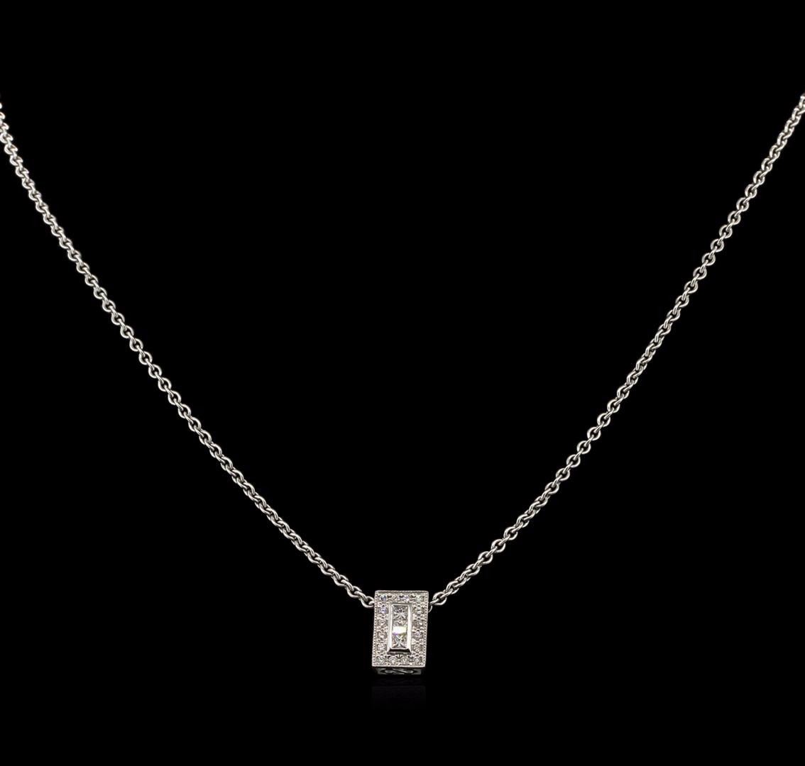 One pendant with chain featuring: 18KT white gold weighing 11.80 grams containing pave set round and channel set princess cut diamonds with a total weight of 0.41ct.