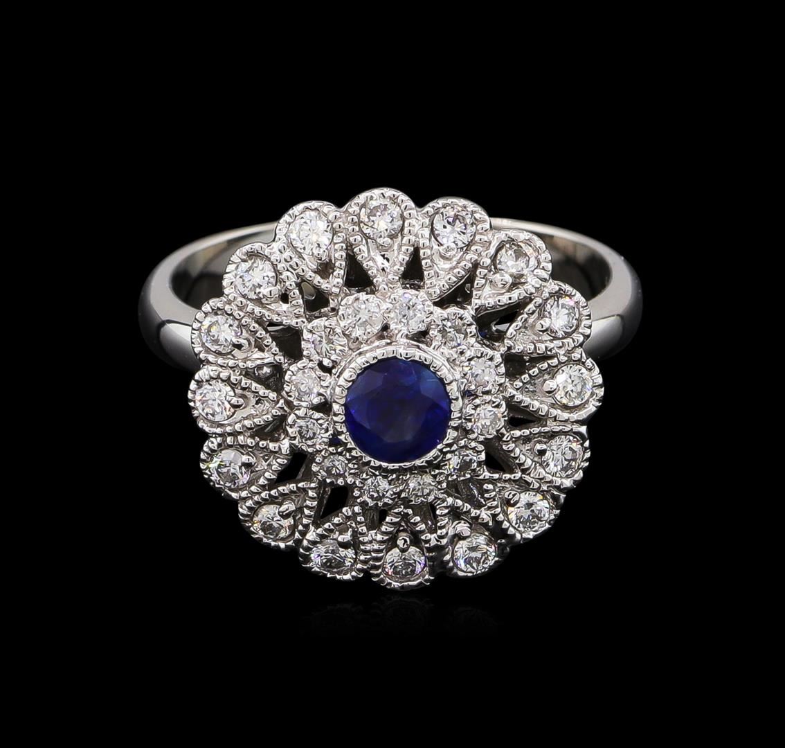 One ring featuring: 14KT white gold weighing 6.10 grams containing one blue sapphire with a total weight of 0.44ct and side diamonds with a total weight of 0.42ct.