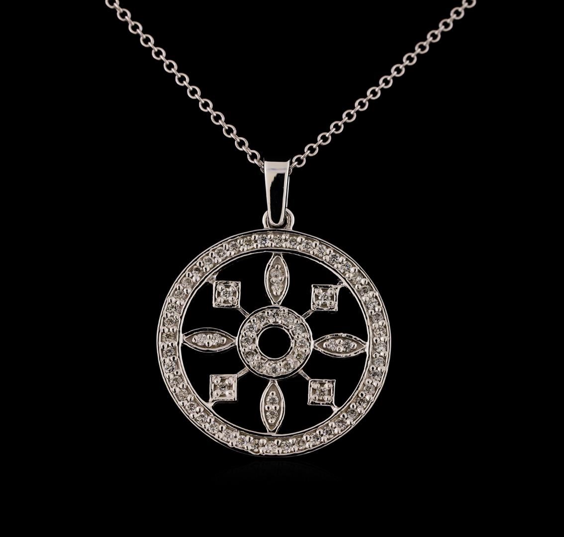 One pendant with chain featuring: 14KT white gold weighing 3.35 grams containing diamonds with a total weight of 0.44ct.