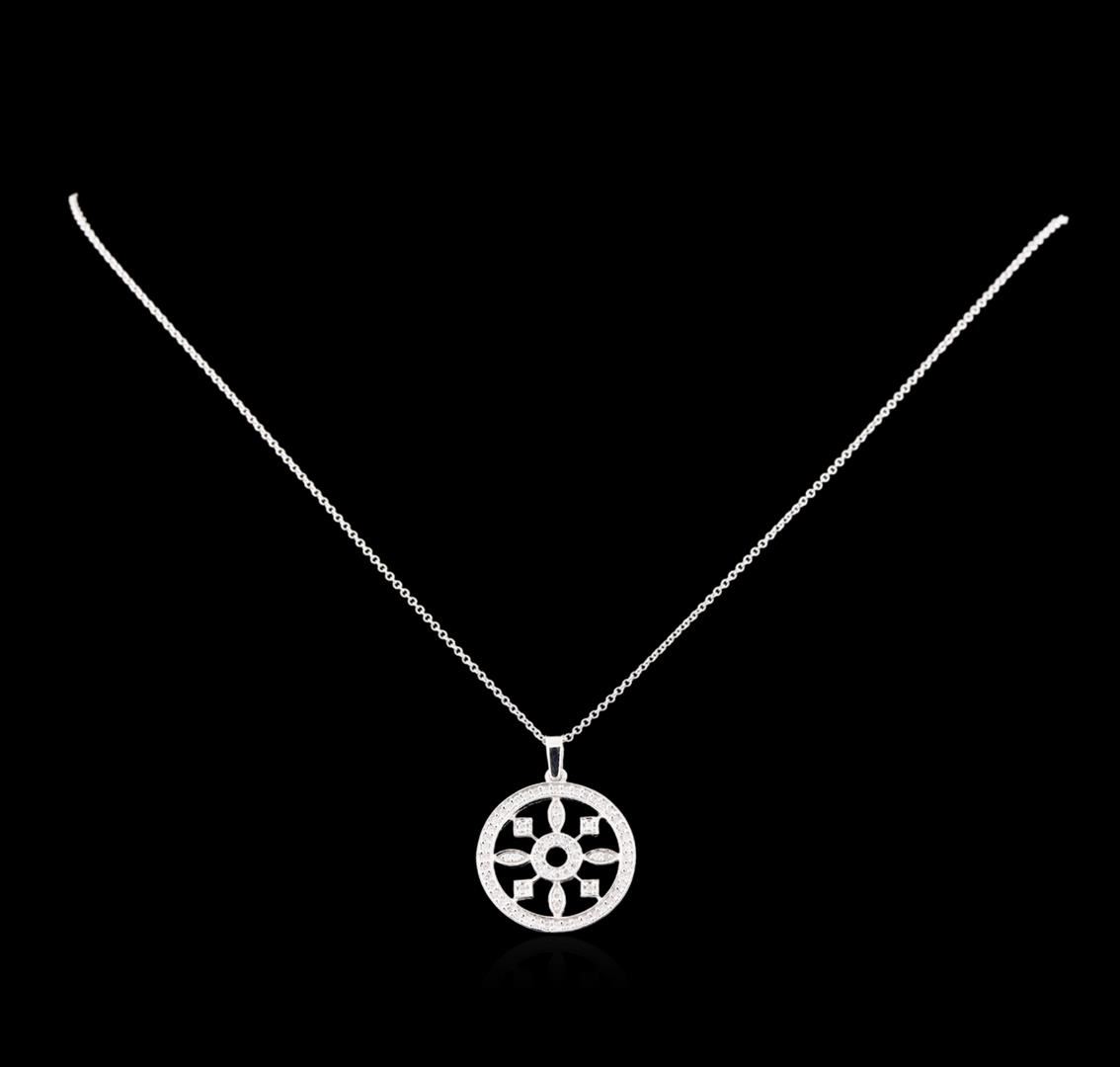 One pendant with chain featuring: 14KT white gold weighing 3.35 grams containing diamonds with a total weight of 0.44ct.