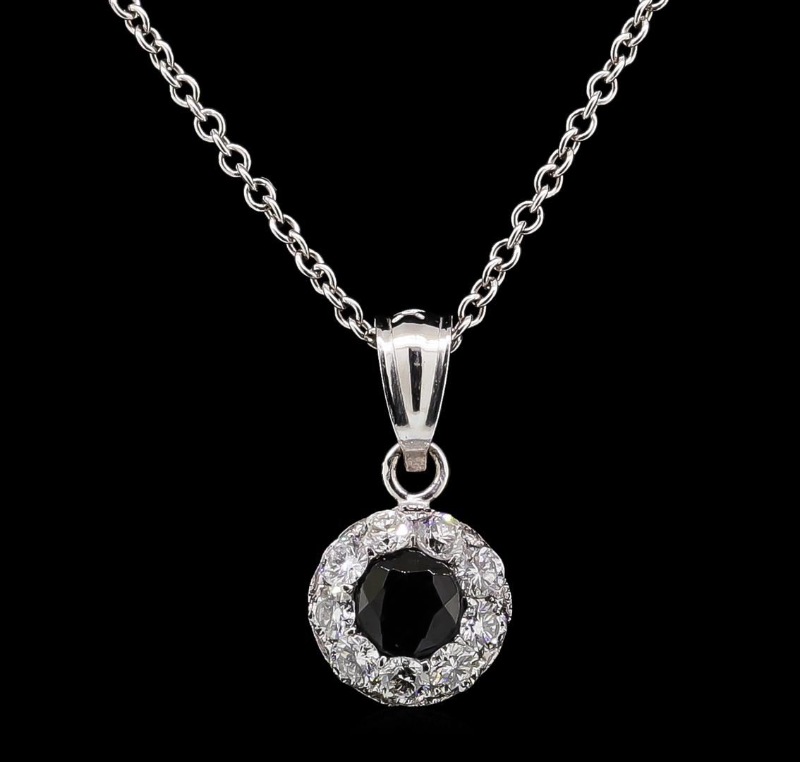 One Pendant with chain : 14KT white gold weighing 2.66gm containing one black onyx with a total weight of 0.45ct and side diamonds weighing 0.15ctw.