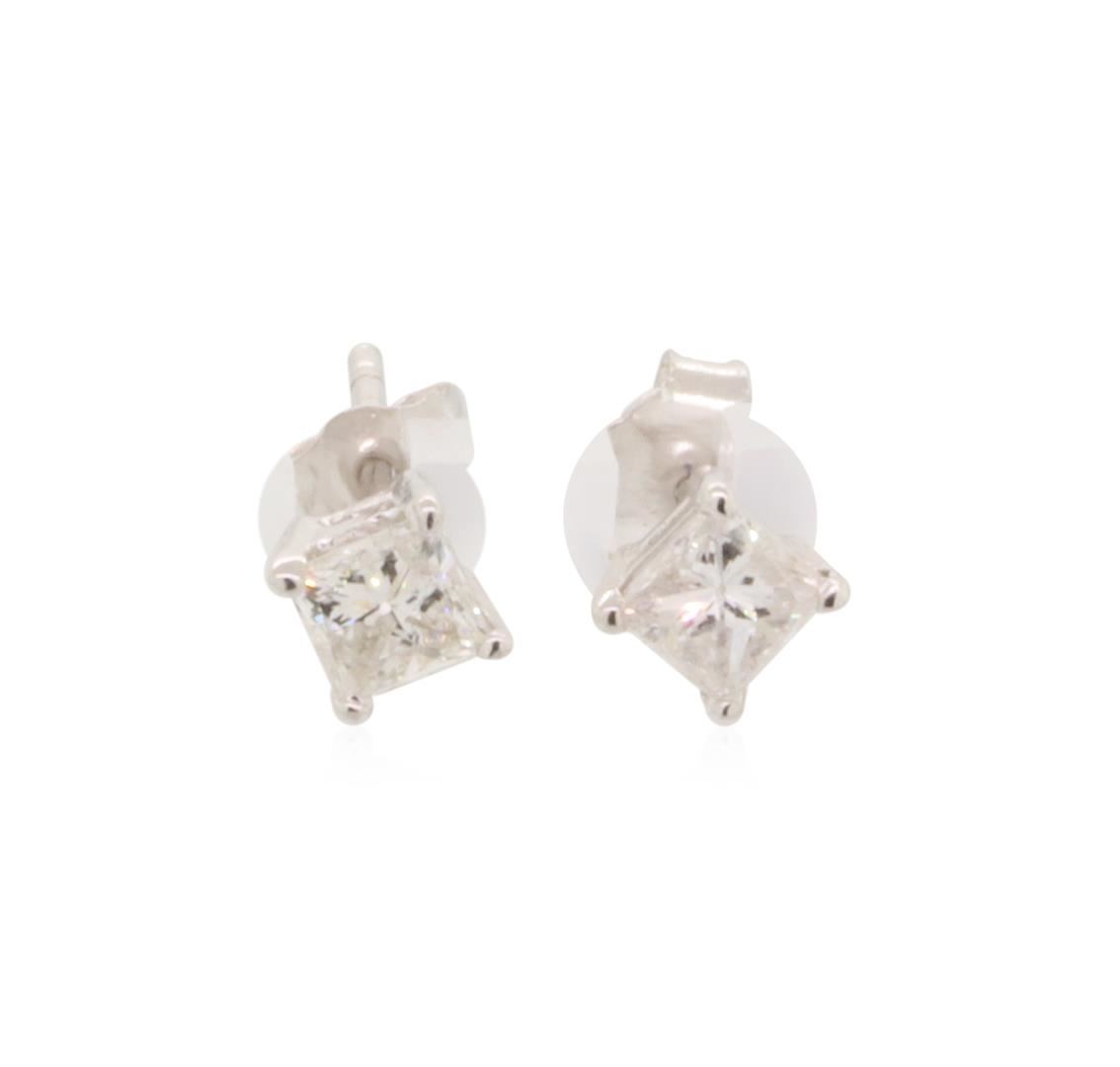 One pair of stud earrings featuring: 14KT white gold weighing 0.8 grams containing diamonds weighing 0.50ctw.