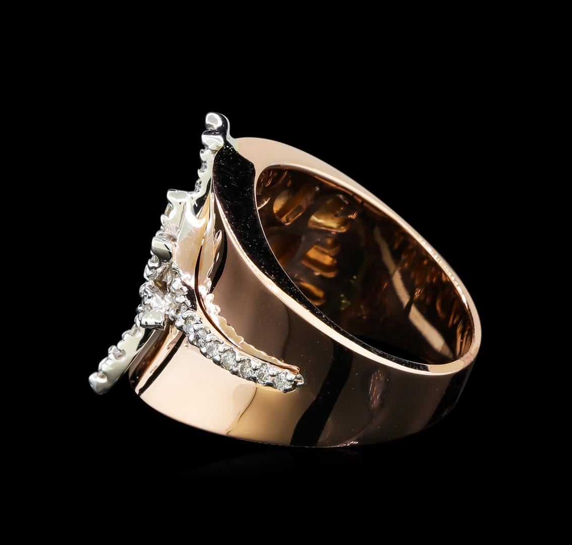 One Ring : 14KT rose and white gold weighing 10.38gm containing diamonds with a total weight of 0.45ctw.