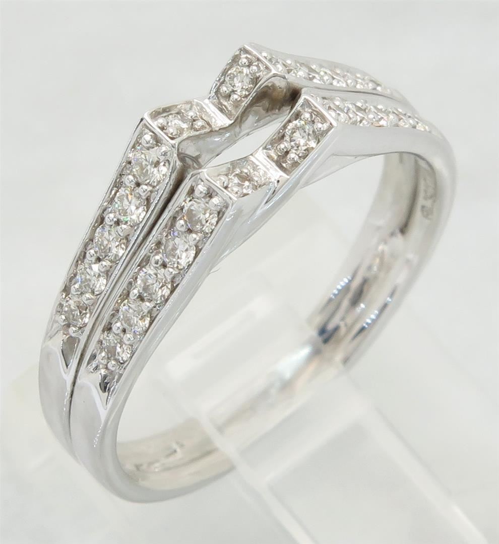 One tested 18K white gold diamond ring. Containing: 24 Round Brilliant Cut Diamonds. Clarity: I-SI, Color: H-I. Approximate total diamond weight: .45CTW. All diamonds are graded in the mounting unless otherwise stated. Weight of ring: 4.3 grams, Size: 7.0.