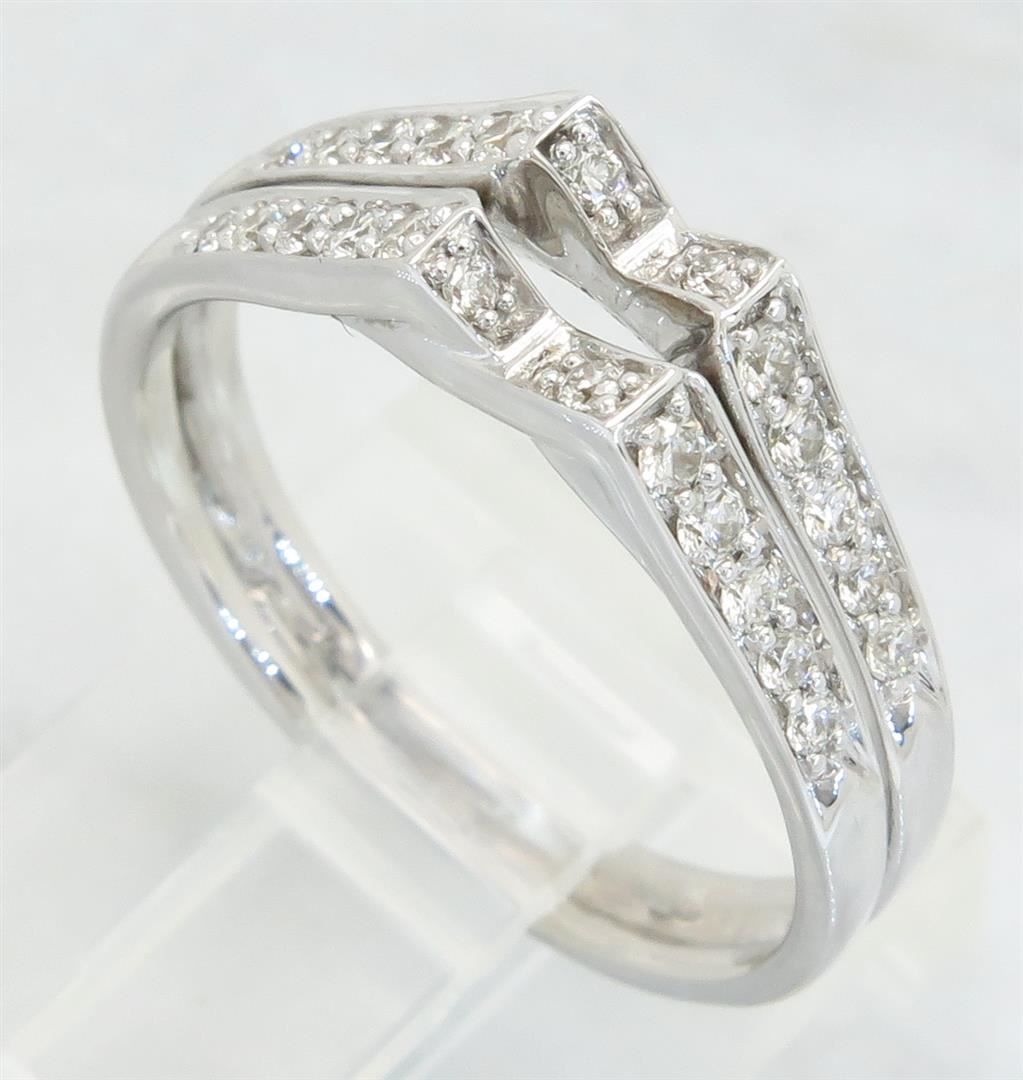 One tested 18K white gold diamond ring. Containing: 24 Round Brilliant Cut Diamonds. Clarity: I-SI, Color: H-I. Approximate total diamond weight: .45CTW. All diamonds are graded in the mounting unless otherwise stated. Weight of ring: 4.3 grams, Size: 7.0.
