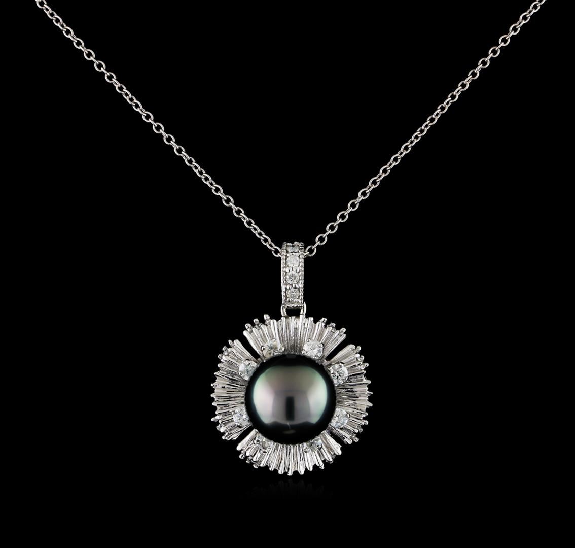 One pendant with chain featuring: 14KT white gold weighing 4.33 grams containing one pearl and diamonds with a total weight of 0.45ct.