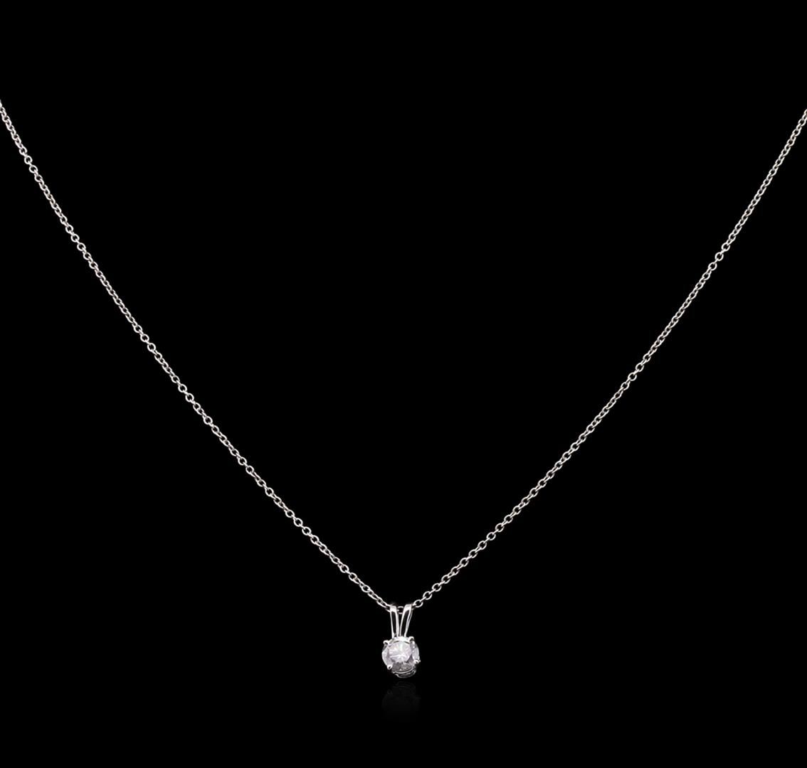 One solitaire pendant with chain featuring: 14KT white gold weighing 1.50 grams containing one diamond with a total weight of 0.46ct.