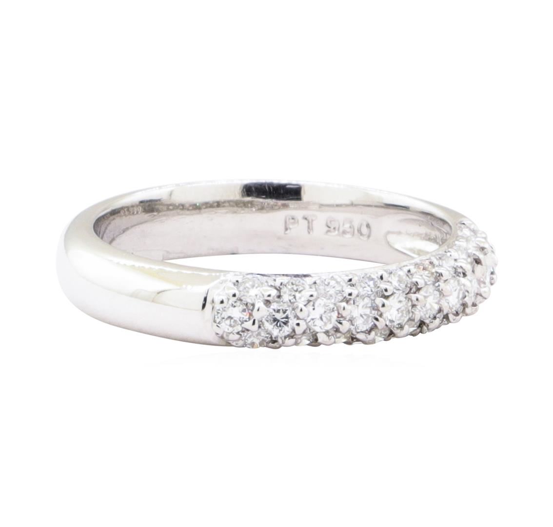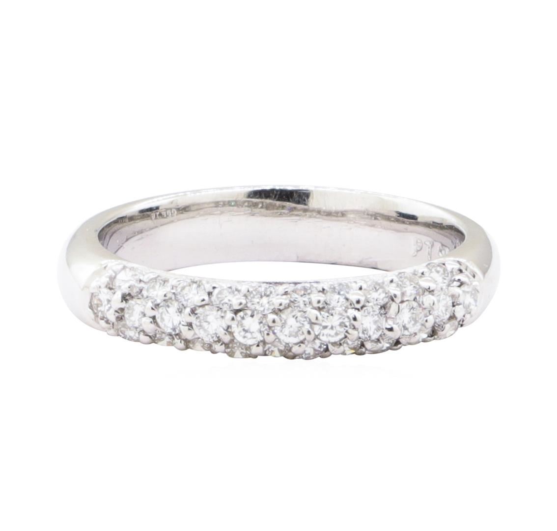 One electronically tested platinum lady's cast fashion ring with a half dome band with a bright polish finish. The featured lady's ring has a shank measuring 3.75 millimeters wide. Identified with markings of 'PT 950'. Condition is new, good workmanship.