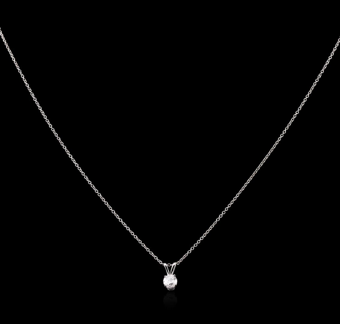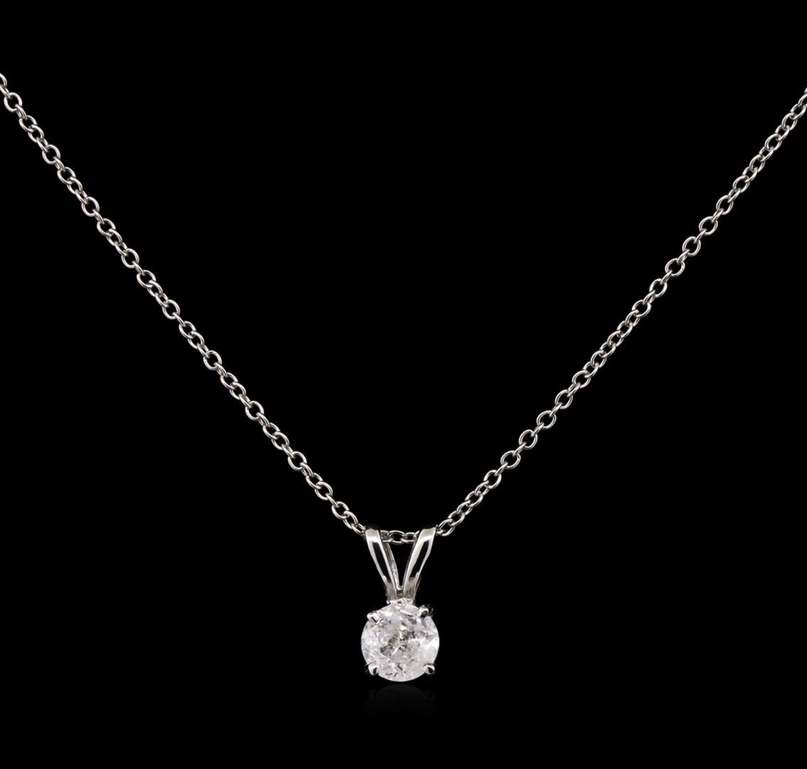 One solitaire pendant with chain featuring: 14KT white gold weighing 1.50 grams containing one diamond with a total weight of 0.46ct.