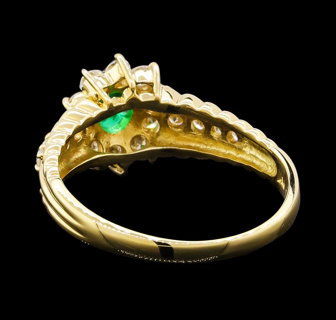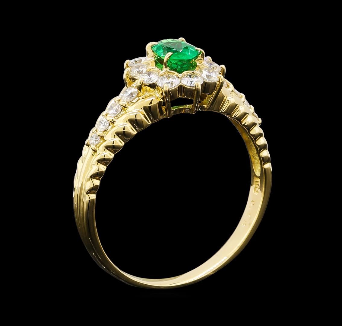 One ring featuring: 18KT Yellow Gold containing Emerald with a total weight of 0.48ct and Diamonds with a total weight of 0.26ct. Total Weight of Ring: 3.1 grams.