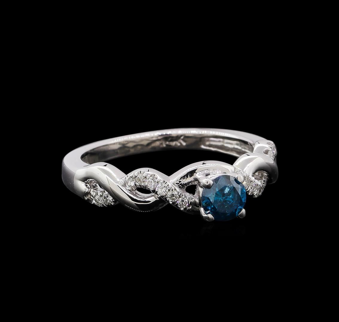 One ring : 14KT white gold weighing 3.71gm containing one blue diamond with a total weight of 0.36ct and diamonds weighing 0.13ctw.