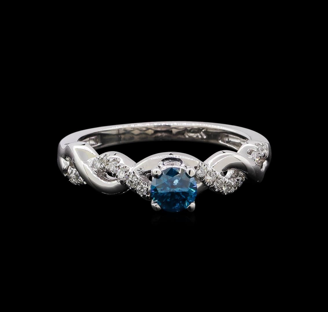 One ring : 14KT white gold weighing 3.71gm containing one blue diamond with a total weight of 0.36ct and diamonds weighing 0.13ctw.