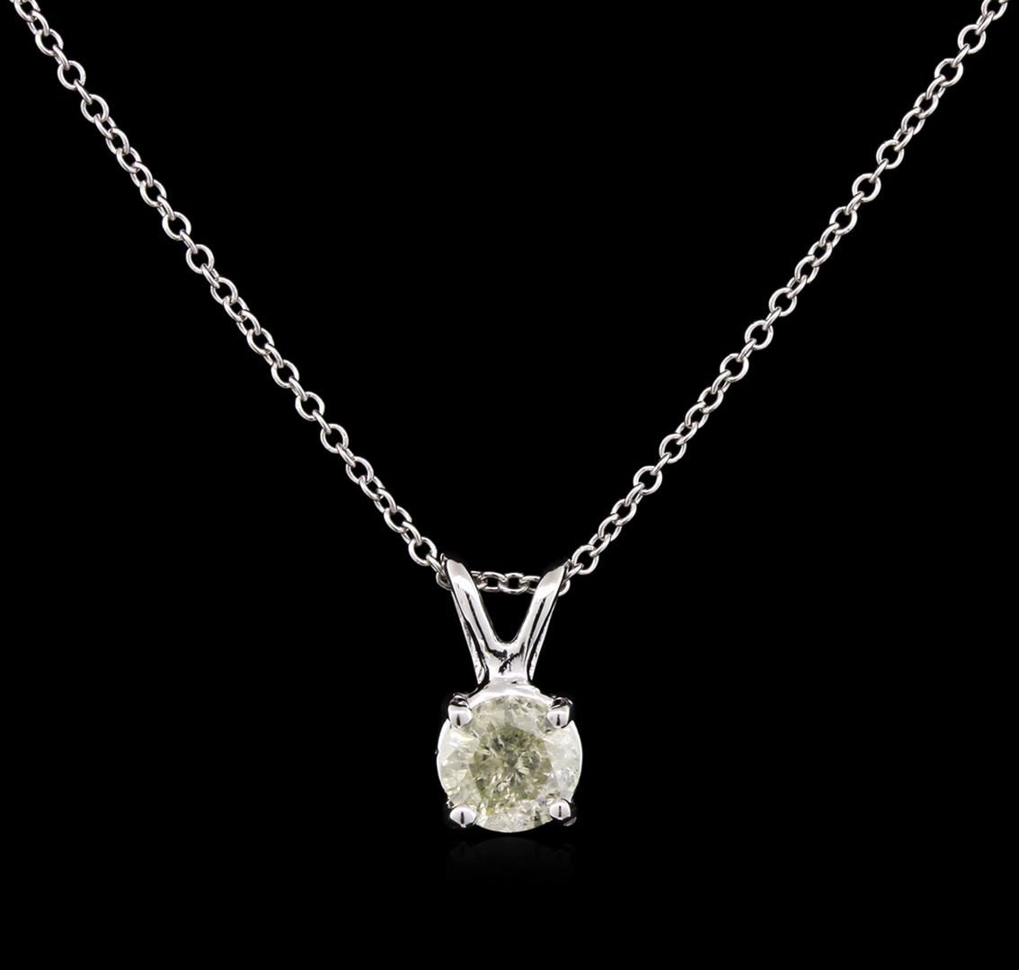 One solitaire pendant with chain featuring: 14KT white gold weighing 1.58 grams containing one diamond with a total weight of 0.49ct.