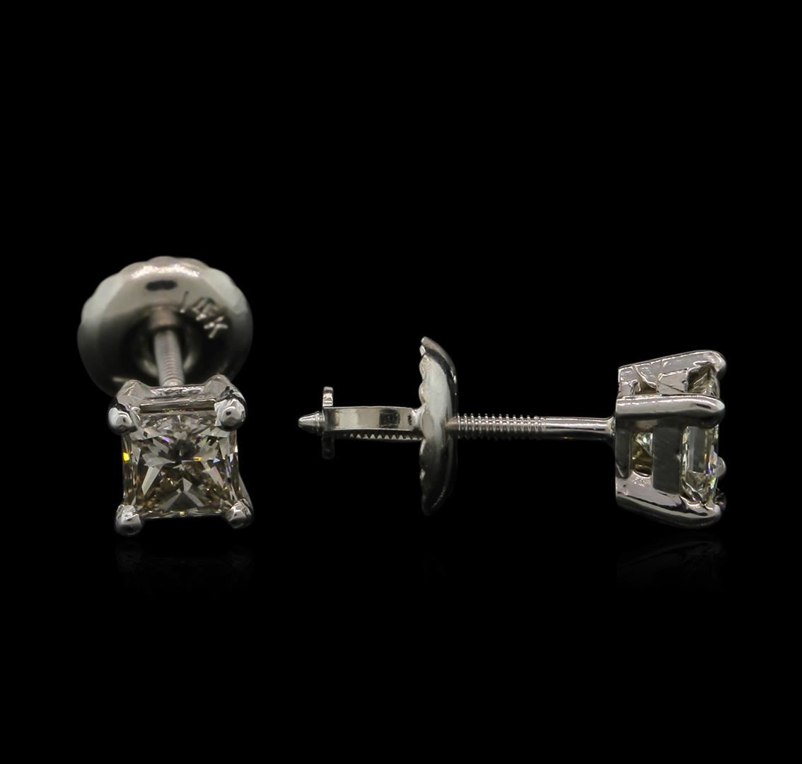 One pair of stud earrings featuring: 14KT white gold weighing 0.55 grams containing prong set princess cut diamonds with a total weight of 0.49ct.