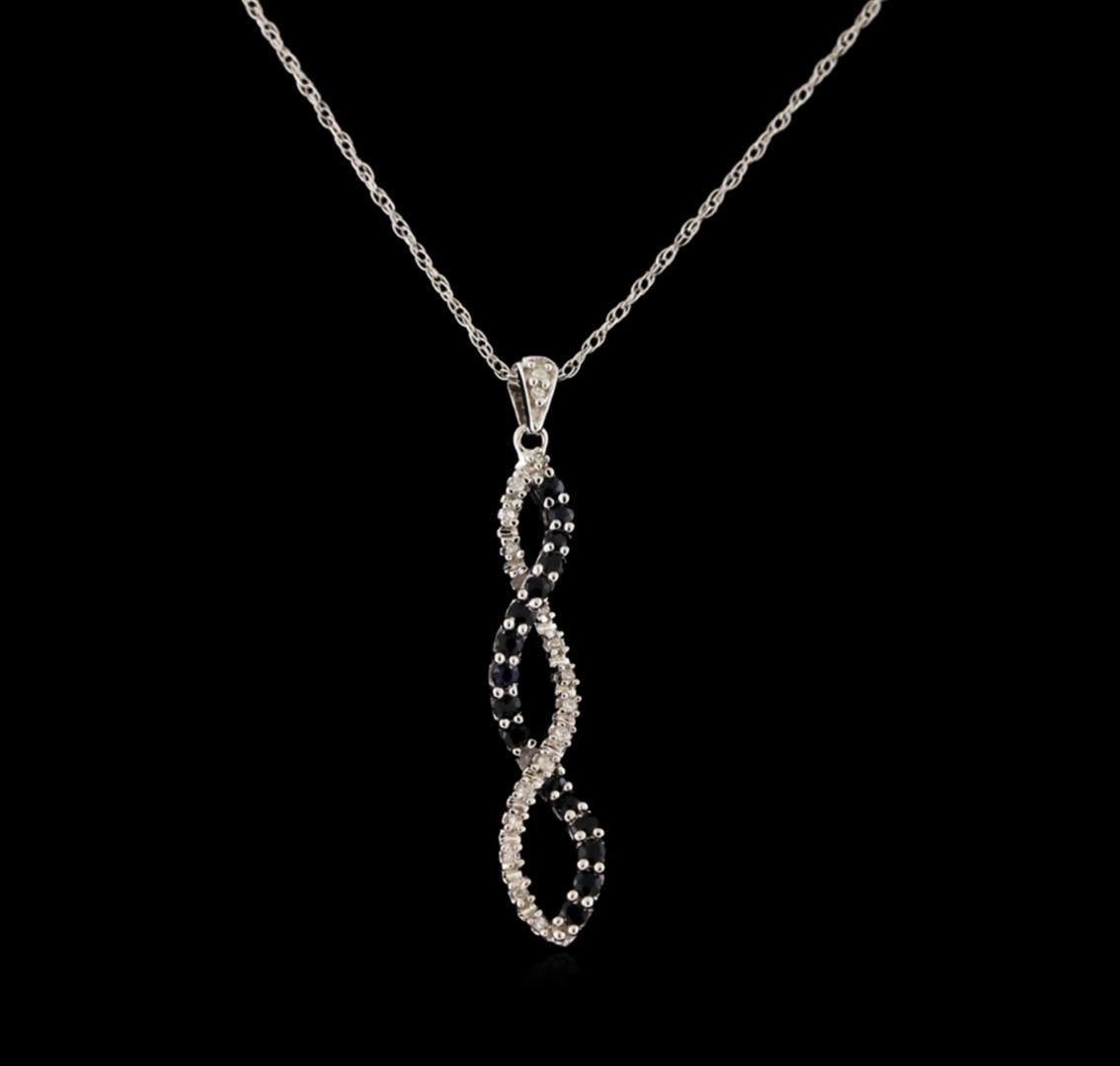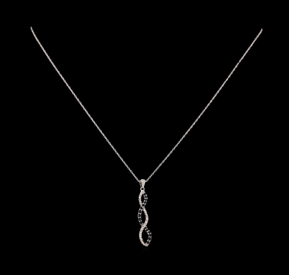 One swirl necklace featuring: 10KT white gold weighing 2.34 grams containing black diamonds weighing 0.25ctw and diamonds weighing 0.25ctw.