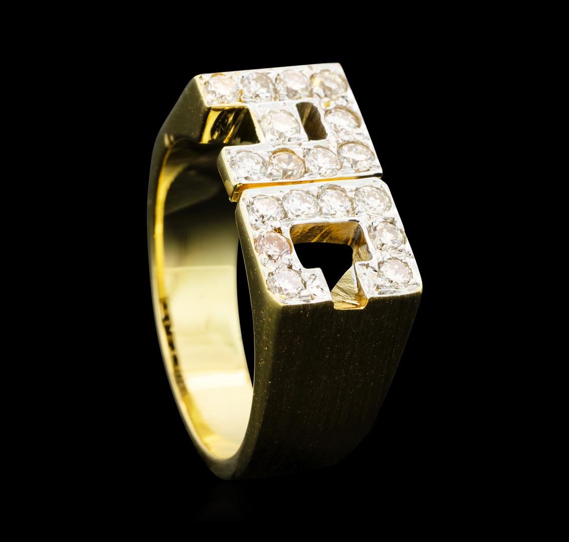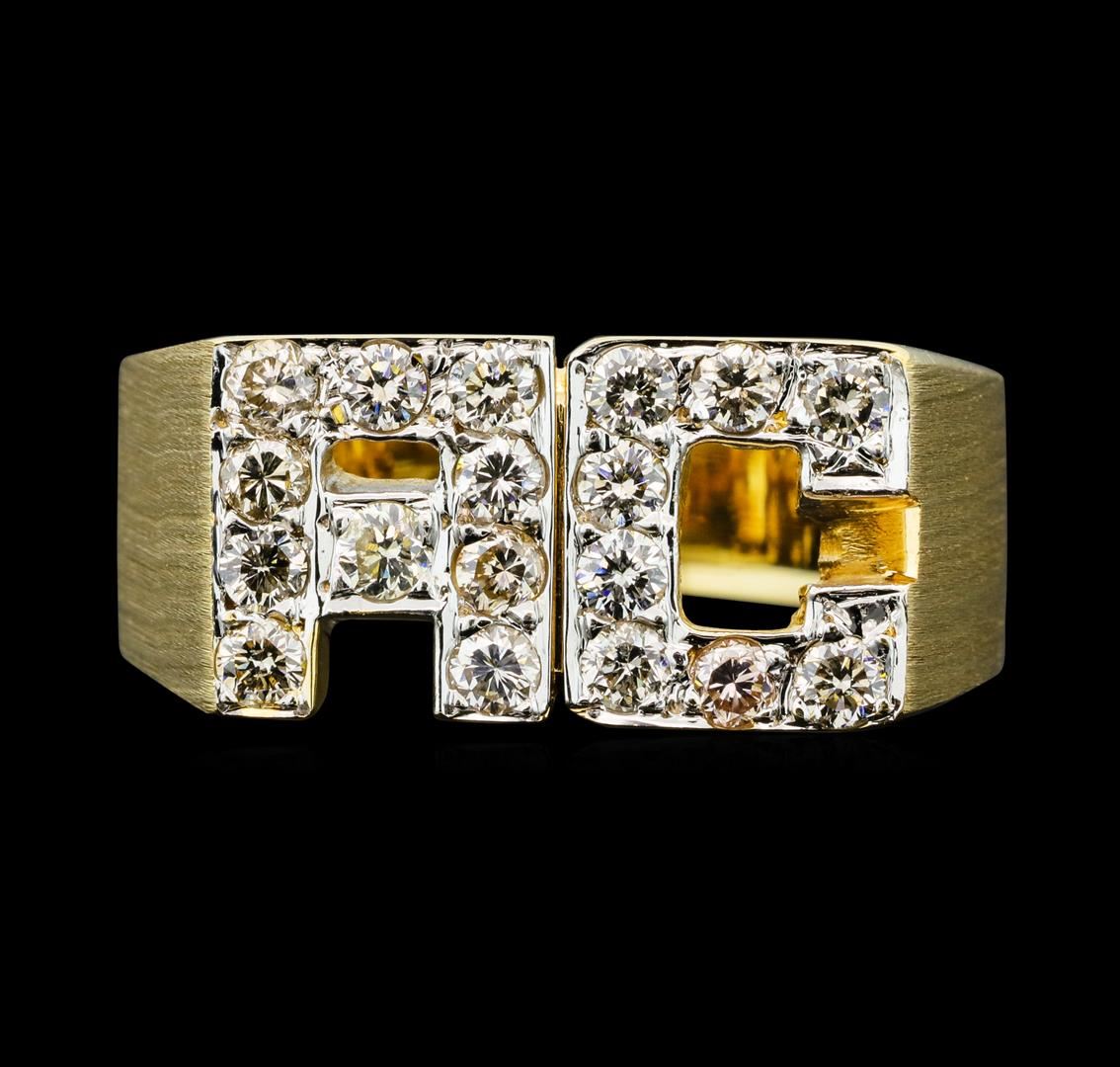 One diamond "AC" initial ring featuring: 14KT yellow gold weighing 11.20 grams containing diamonds weighing 0.50ctw.