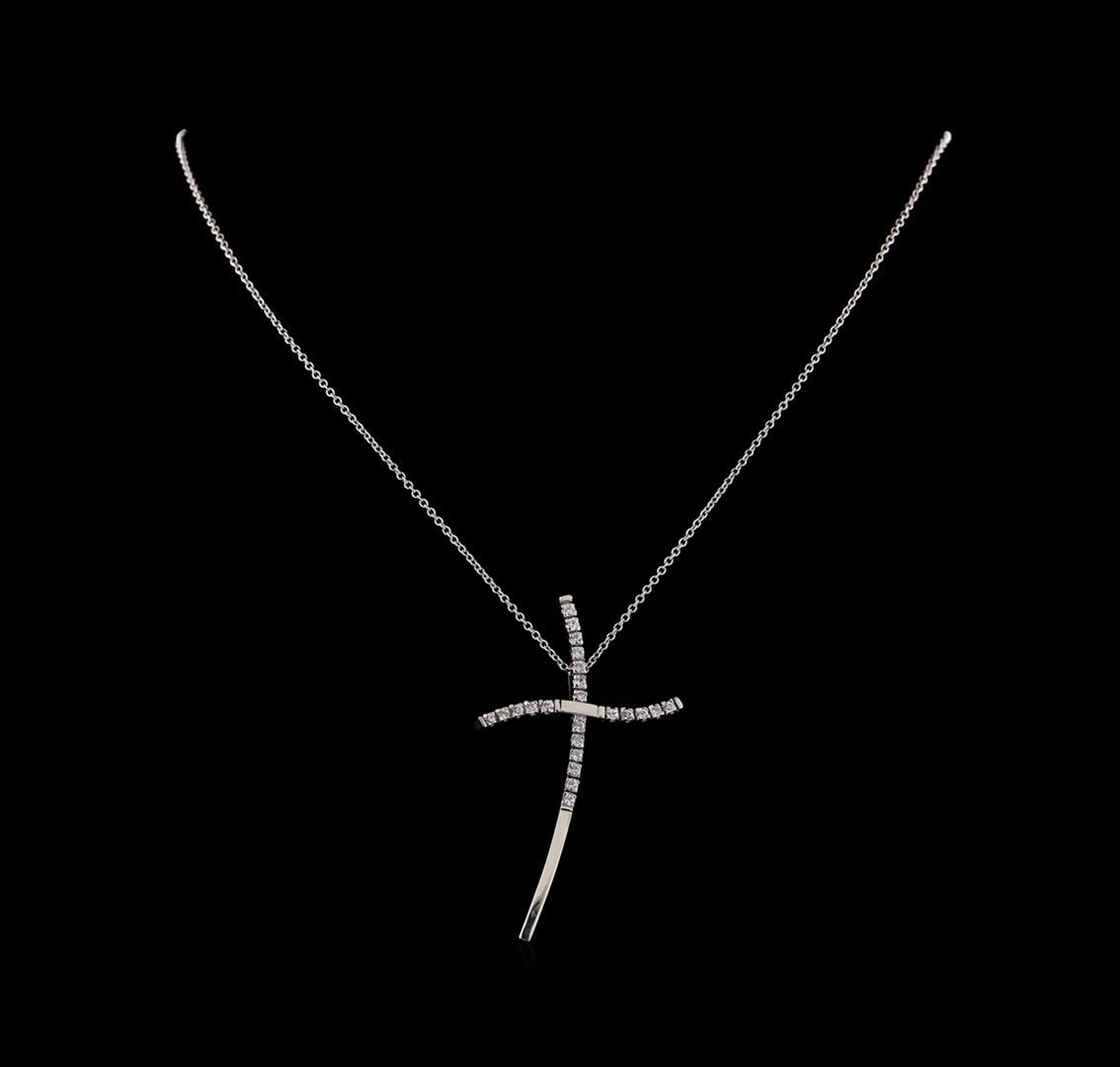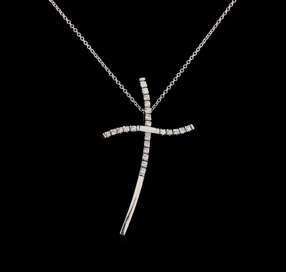 One cross pendant with chain featuring: 14KT white gold weighing 5.79 grams and diamonds weighing 0.50ctw.