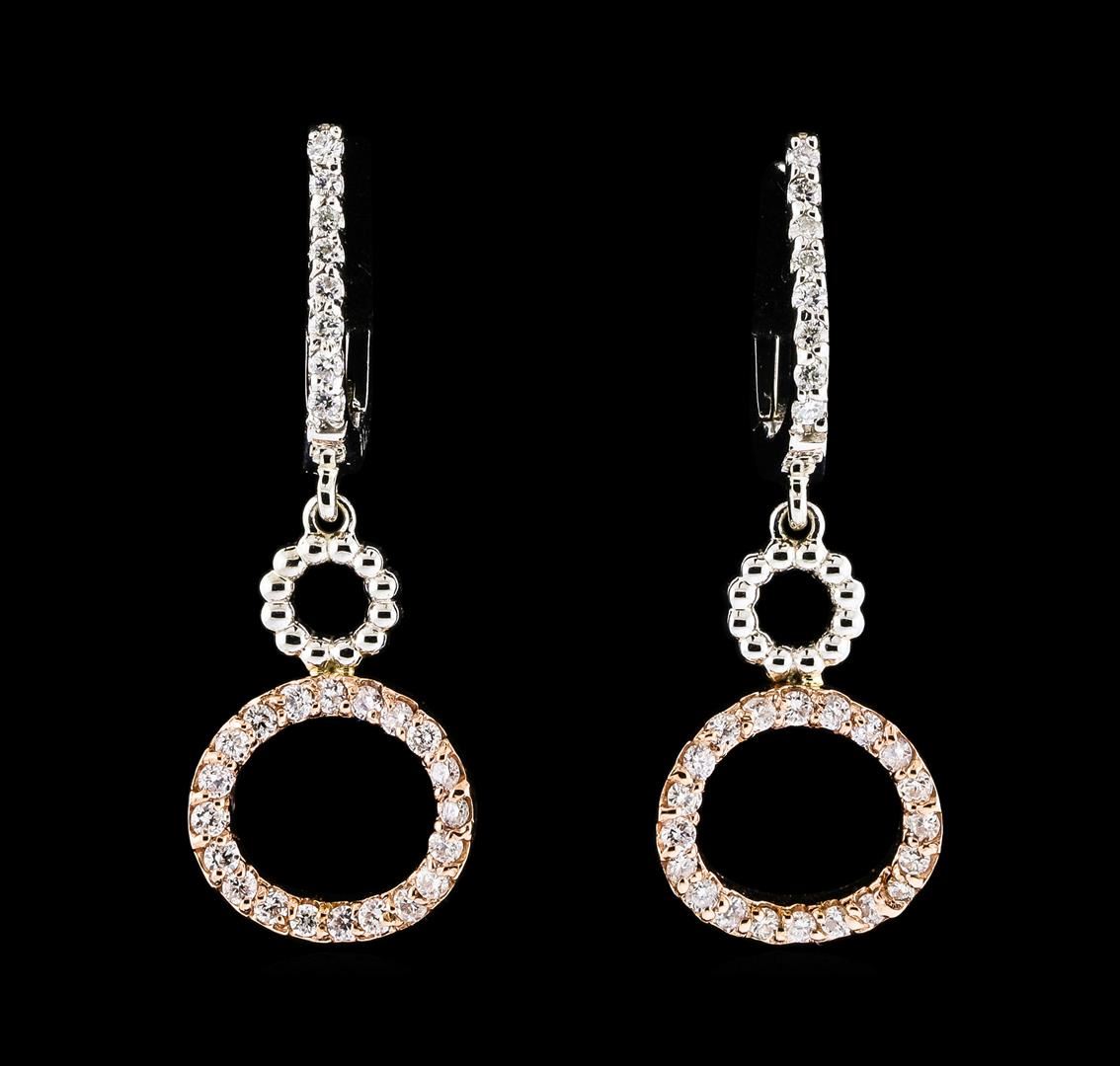 One pair of Diamond Earrings featuring: 14KT Two-Tone Gold with a total weight of 3.82 grams and 56 Diamonds with a total weight of 0.50ctw.