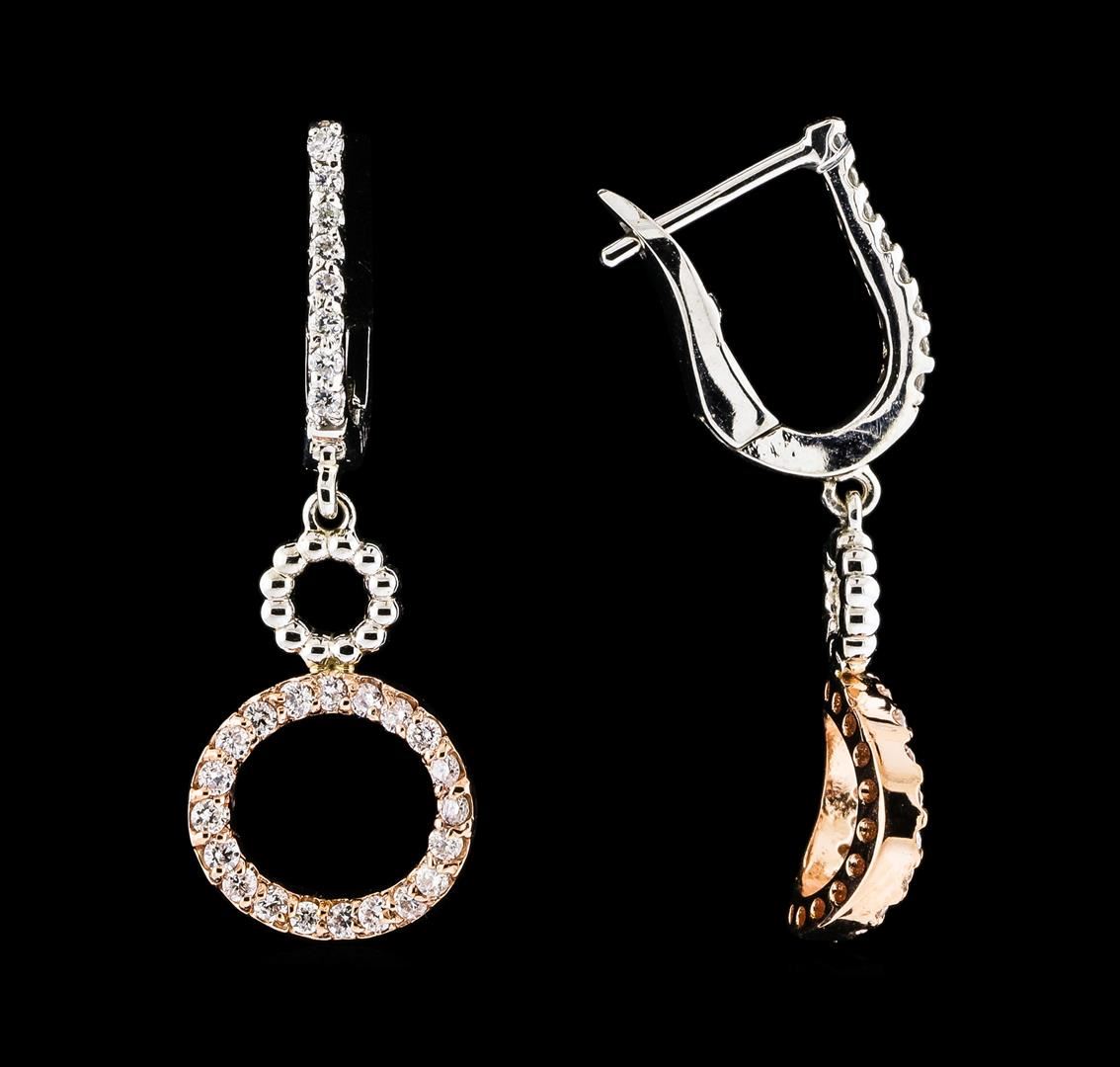 One pair of Diamond Earrings featuring: 14KT Two-Tone Gold with a total weight of 3.82 grams and 56 Diamonds with a total weight of 0.50ctw.
