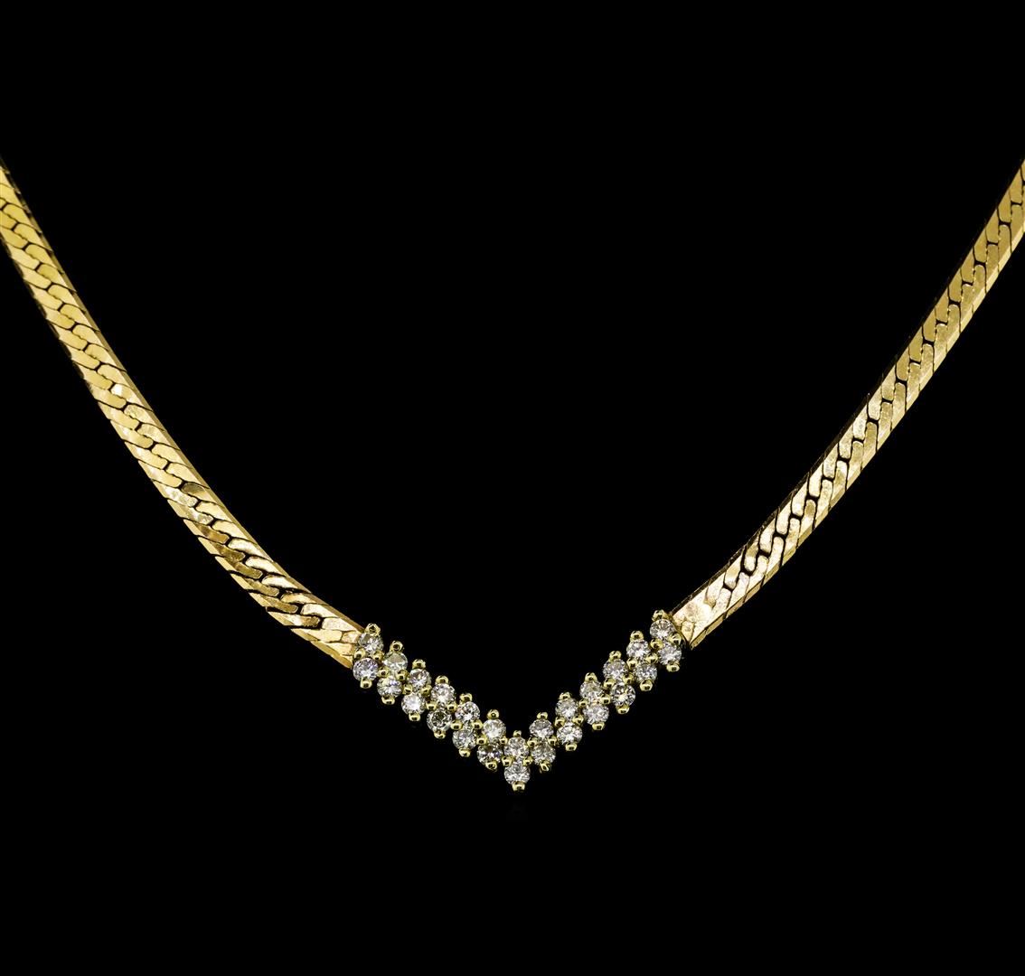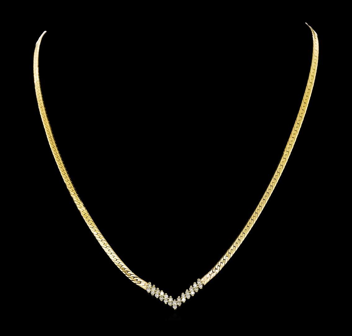 One lady's necklace featuring: 14KT yellow gold weighing 9.9 grams containing diamonds weighing 0.50ctw. The necklace measures approximately eighteen inches in length.