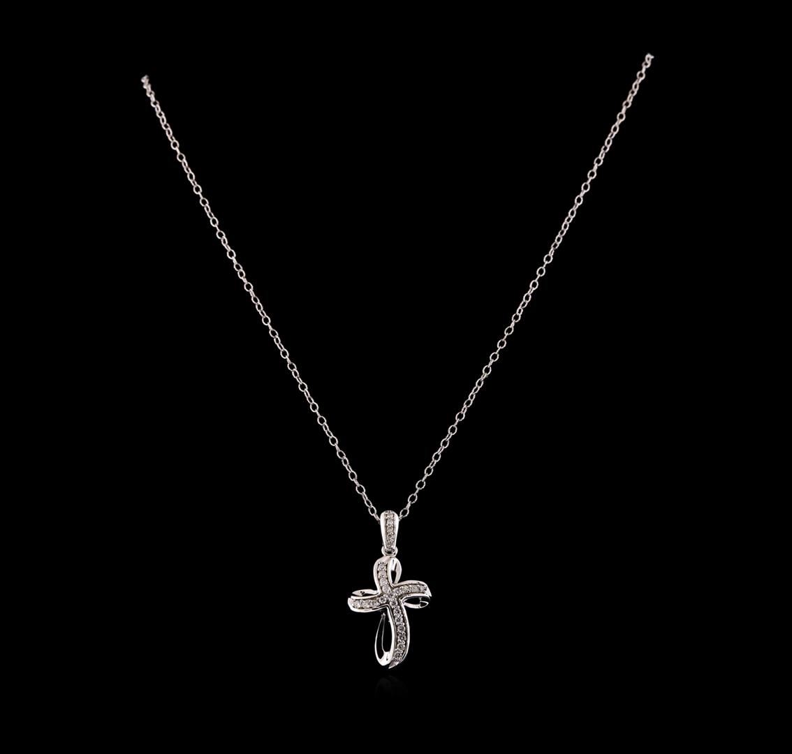 One pendant with chain : 14KT white gold weighing 4.72gm containing diamonds with a total weight of 0.50ctw.