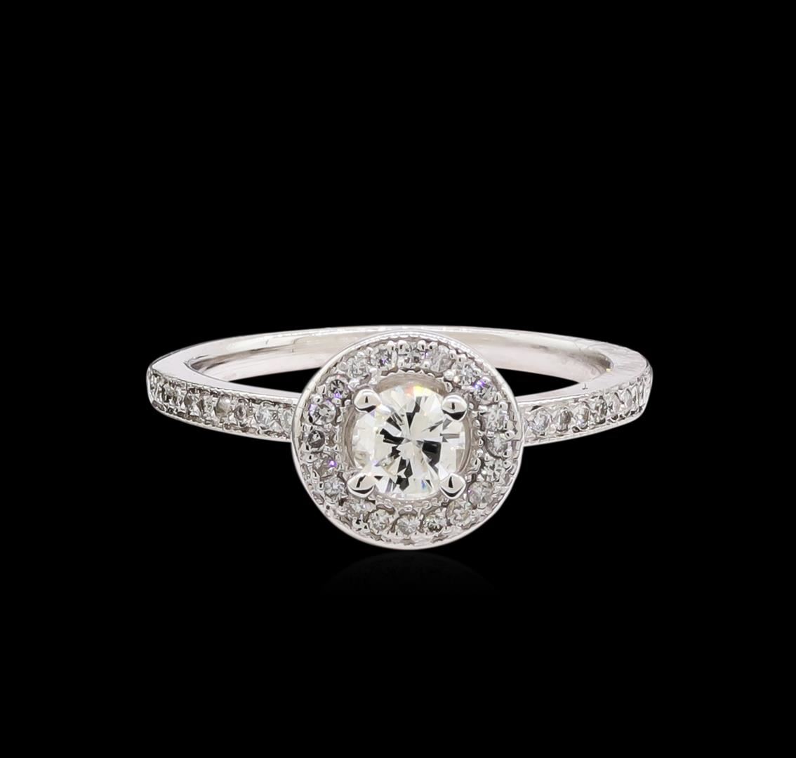One ring featuring: 14KT white gold weighing 2.61 grams containing one diamond with a total weight of 0.30ct and side diamonds with a total weight of 0.20ct.