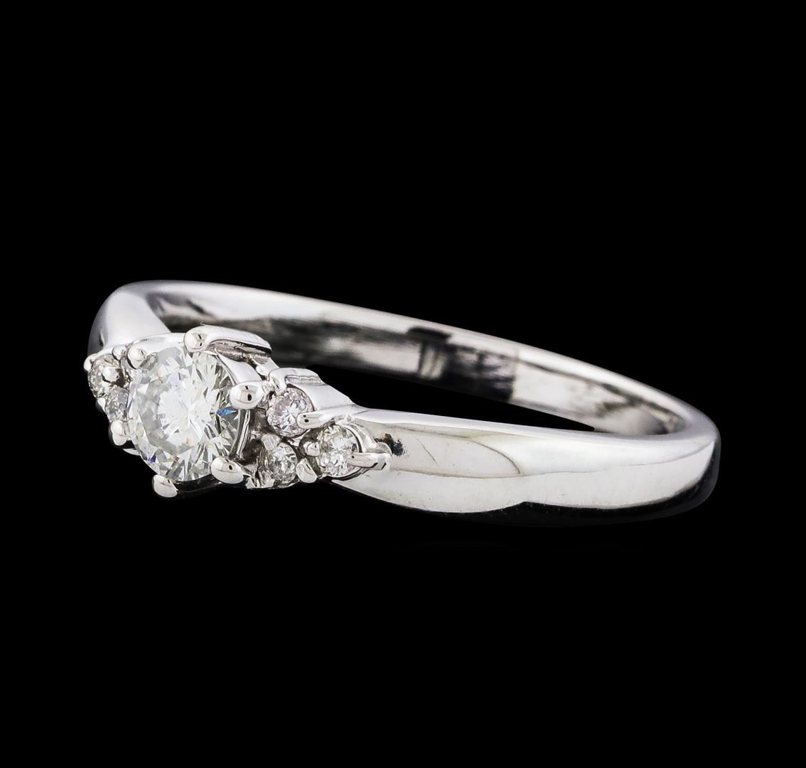 One Diamond Ring featuring: 14KT White Gold with a total weight of 2.80 grams, center stone diamond with a total weight of 0.25ct, and side diamonds with a total weight of 0.25ctw.