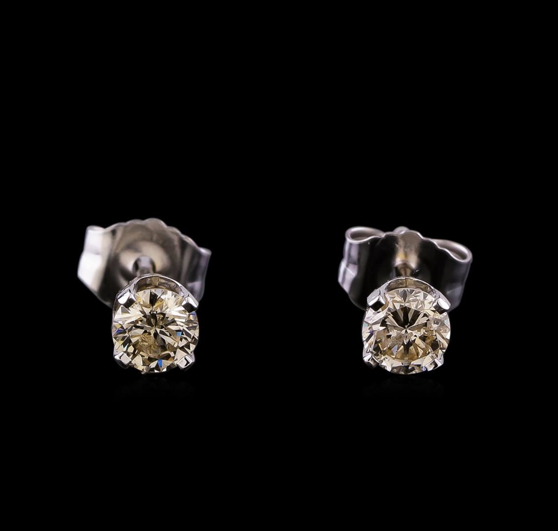 One pair of stud earrings featuring: 14KT white gold weighing 0.17 grams containing two diamonds weighing 0.50ctw.