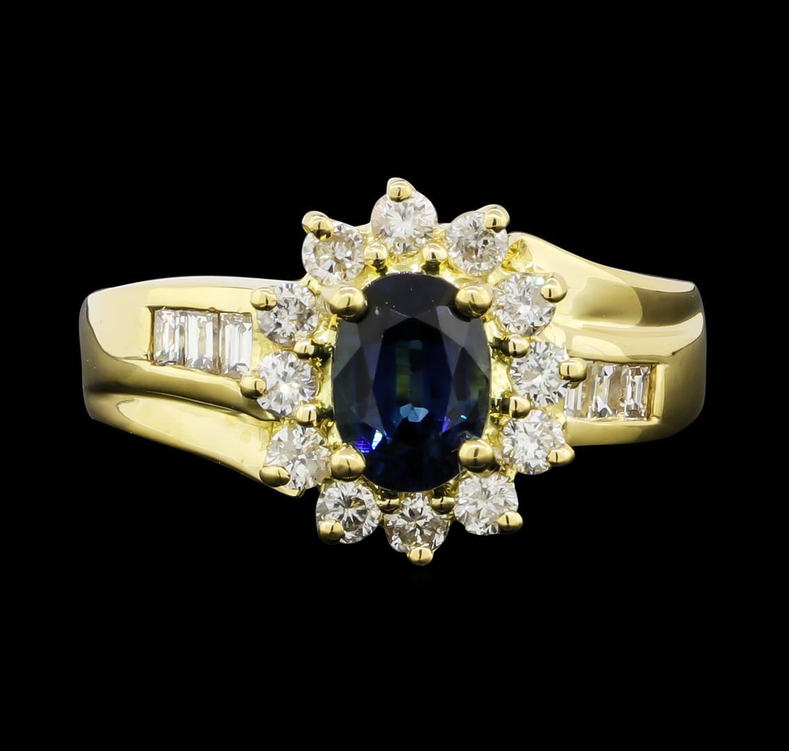 One ring featuring: 18KT yellow gold weighing 5.90 grams containing one sapphire weighing 0.50ct and diamonds weighing 0.50ctw.